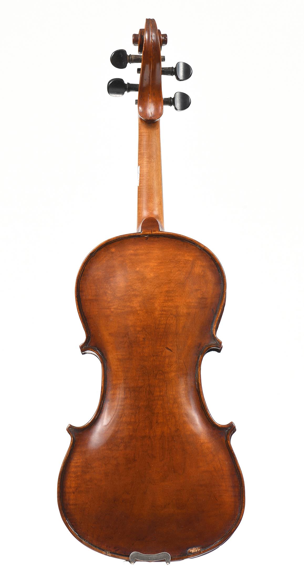 portant une étiquette apocryphe"Pecchini Vasco... 1922". Fond d'une pièce en érable peu ondé. Vernis brun orangé sur fond doré. 360 mm.