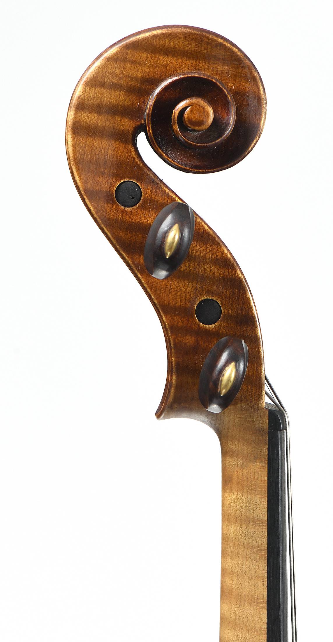 Fond de deux pièces en érable. Vernis brun doré. 409 mm.
