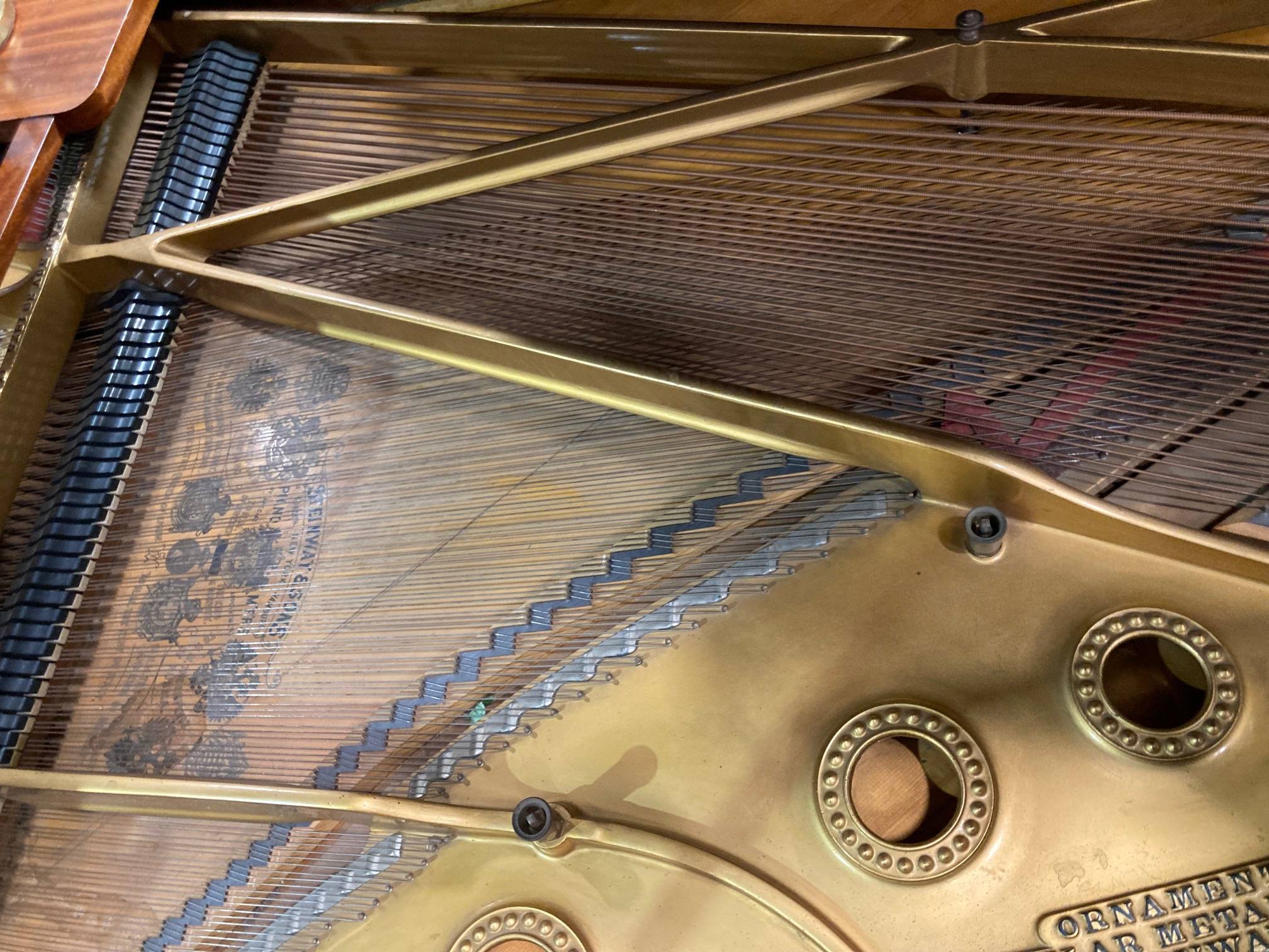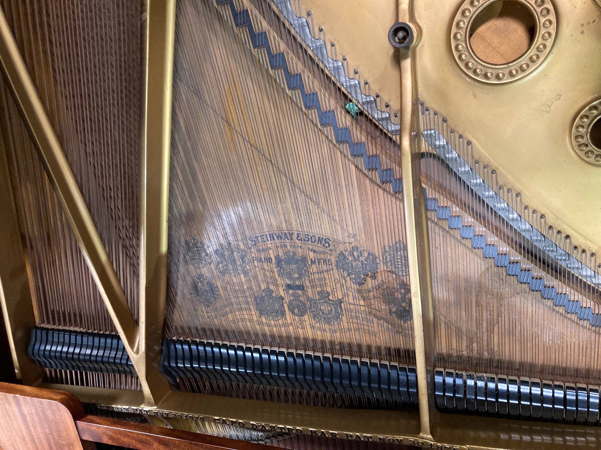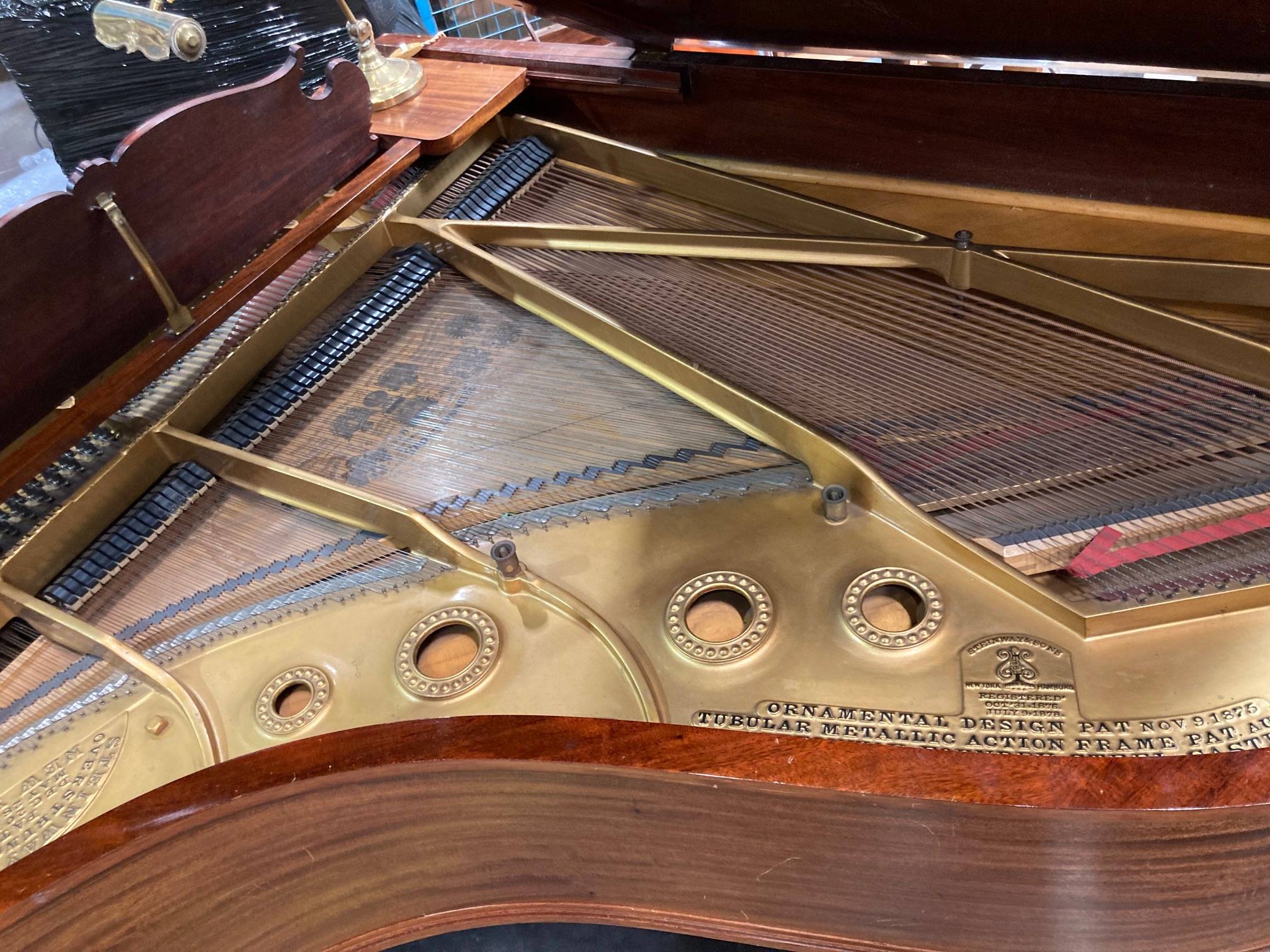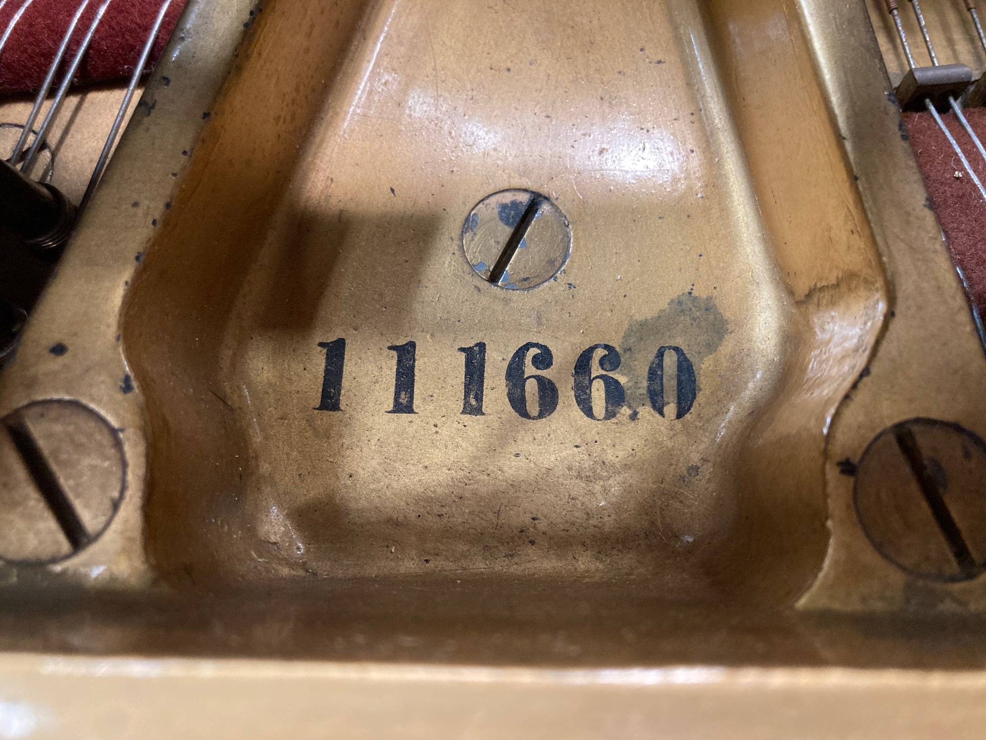 Piano 1/4 Steinway de 1904 en acajou et placage. Pieds galbés, modèle de style Louis XV. Numéro de série : 111660.