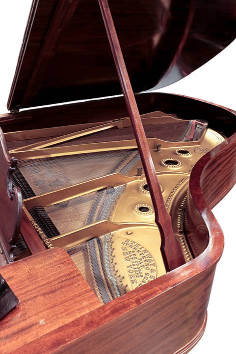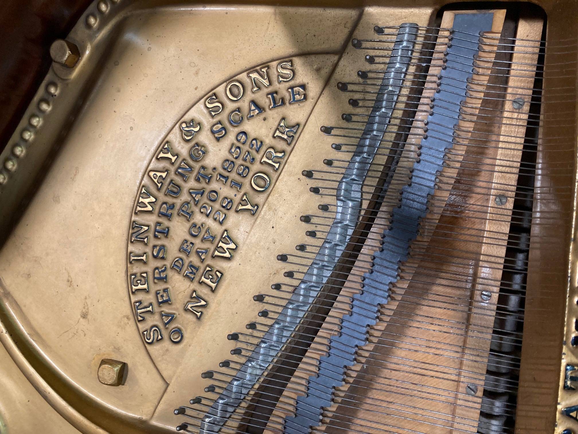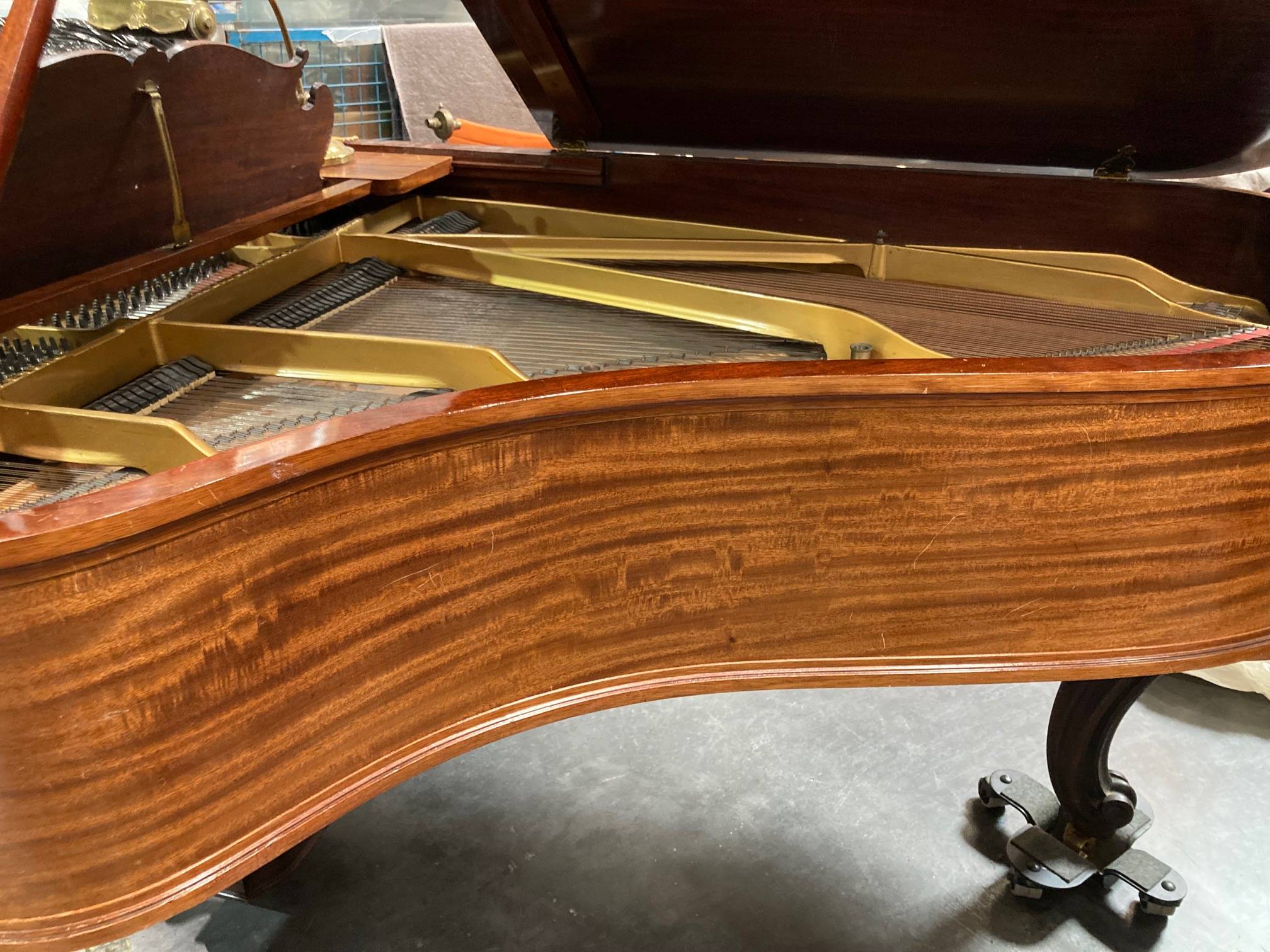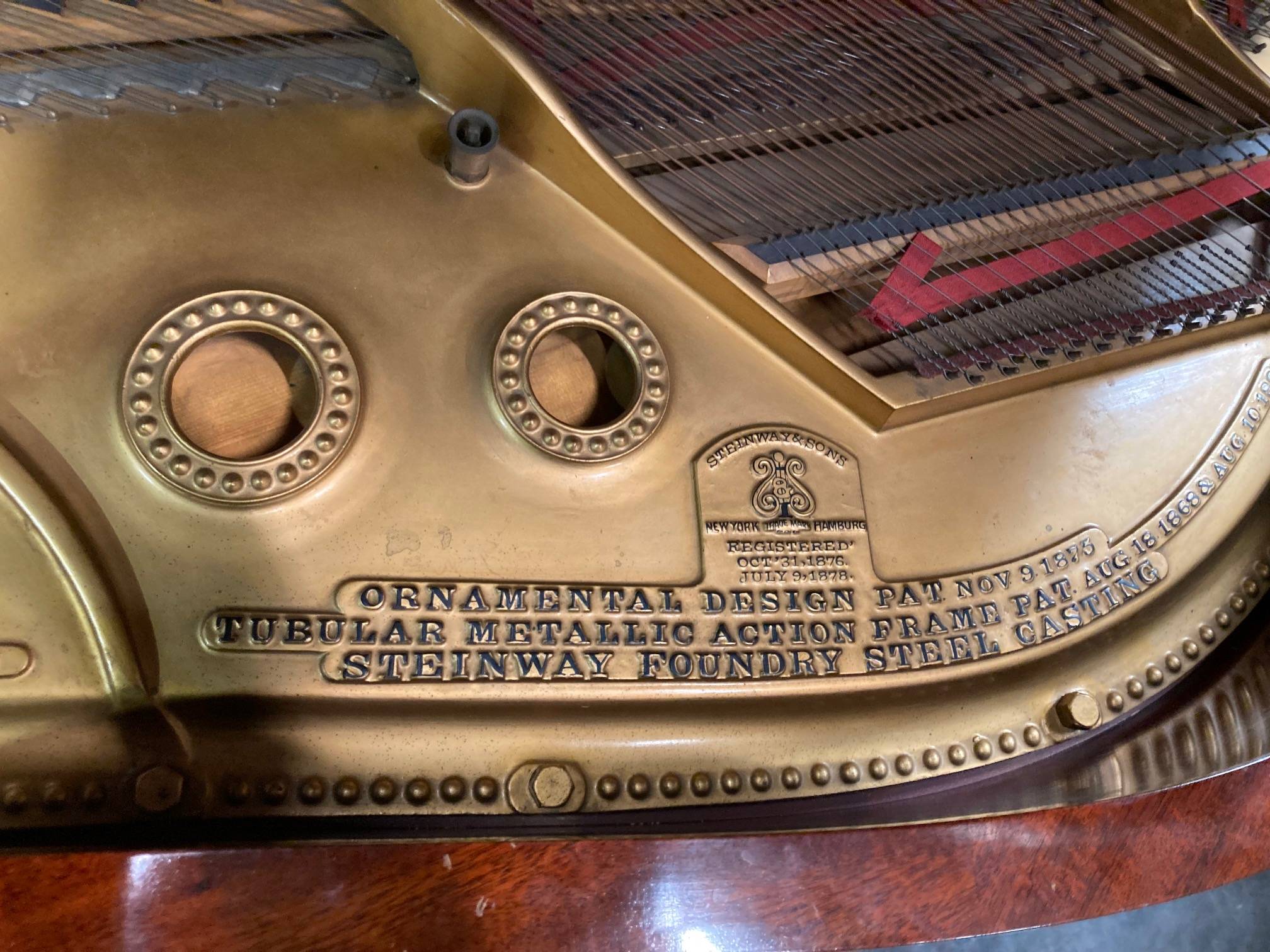Piano 1/4 Steinway de 1904 en acajou et placage. Pieds galbés, modèle de style Louis XV. Numéro de série : 111660.