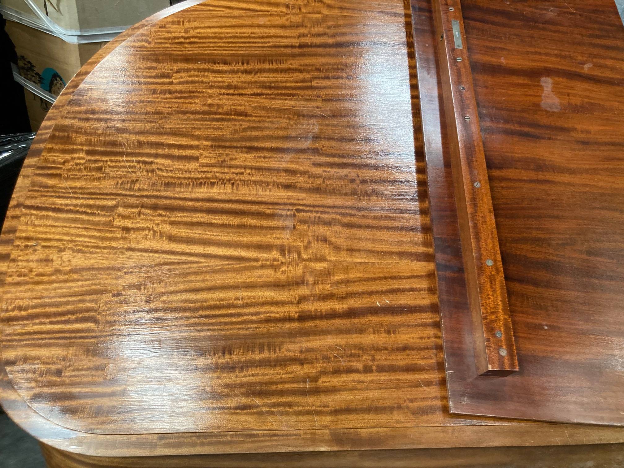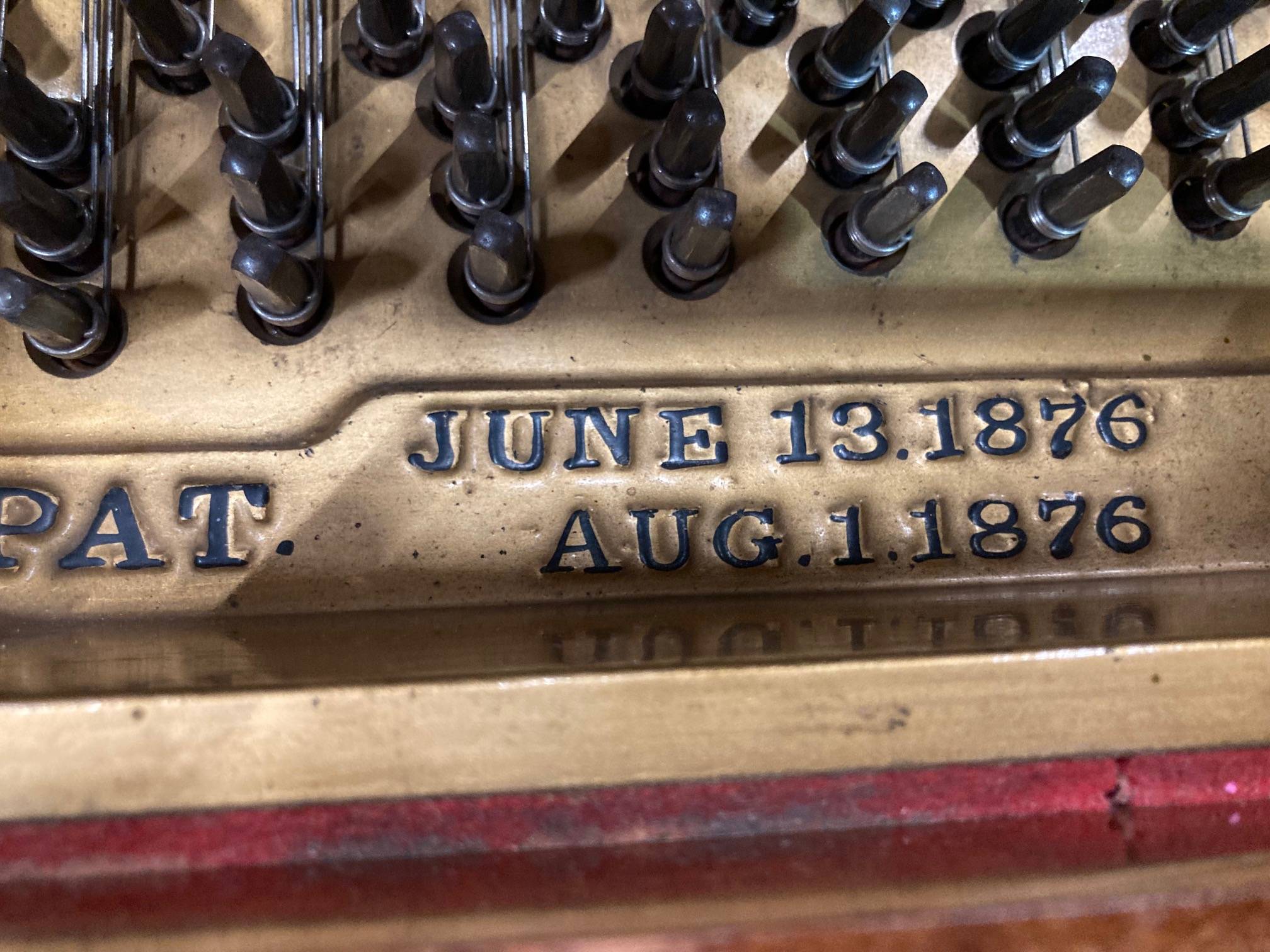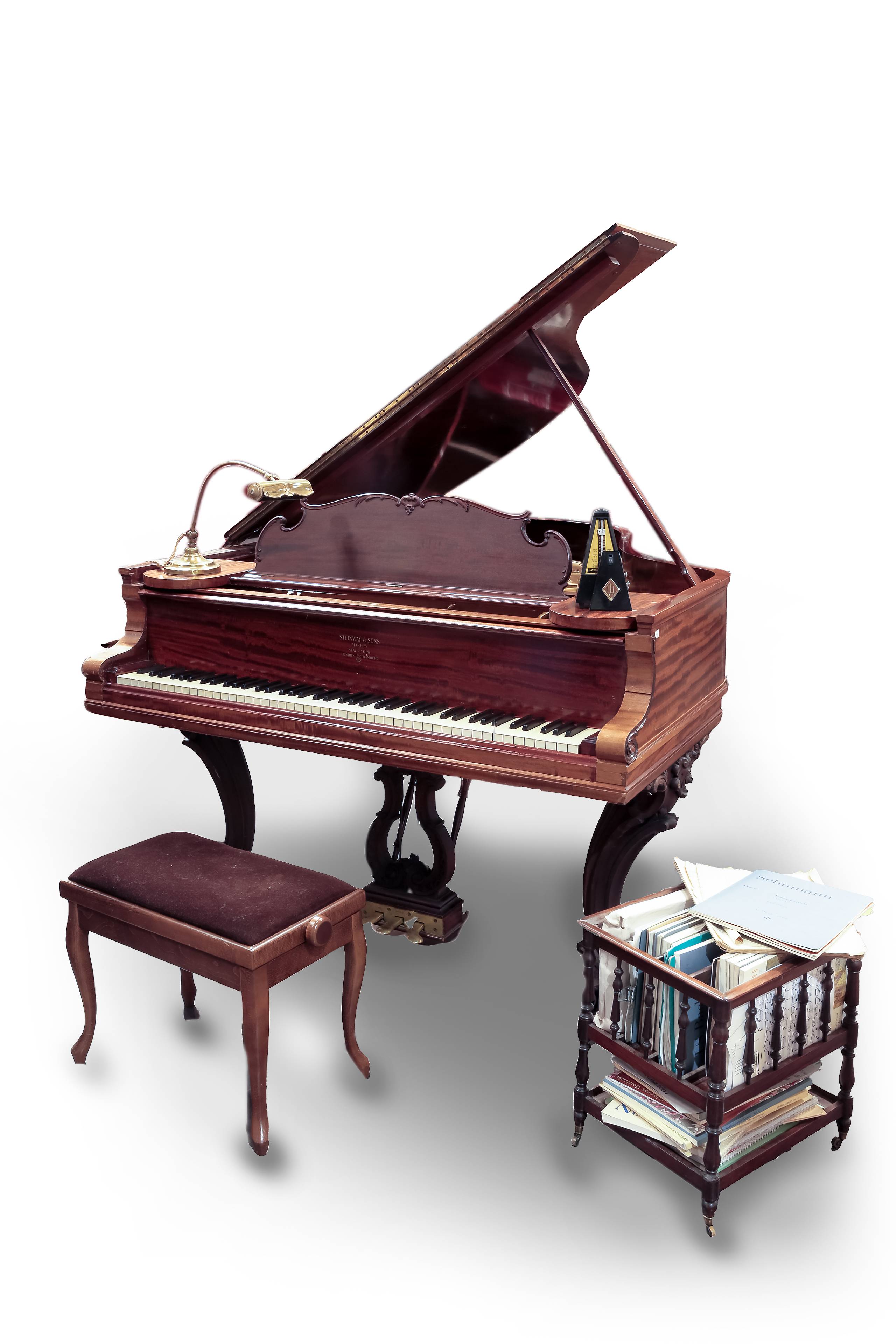 On y joint un casier à partitions, un tabouret de piano, et une lampe. Diverses usures et altérations.