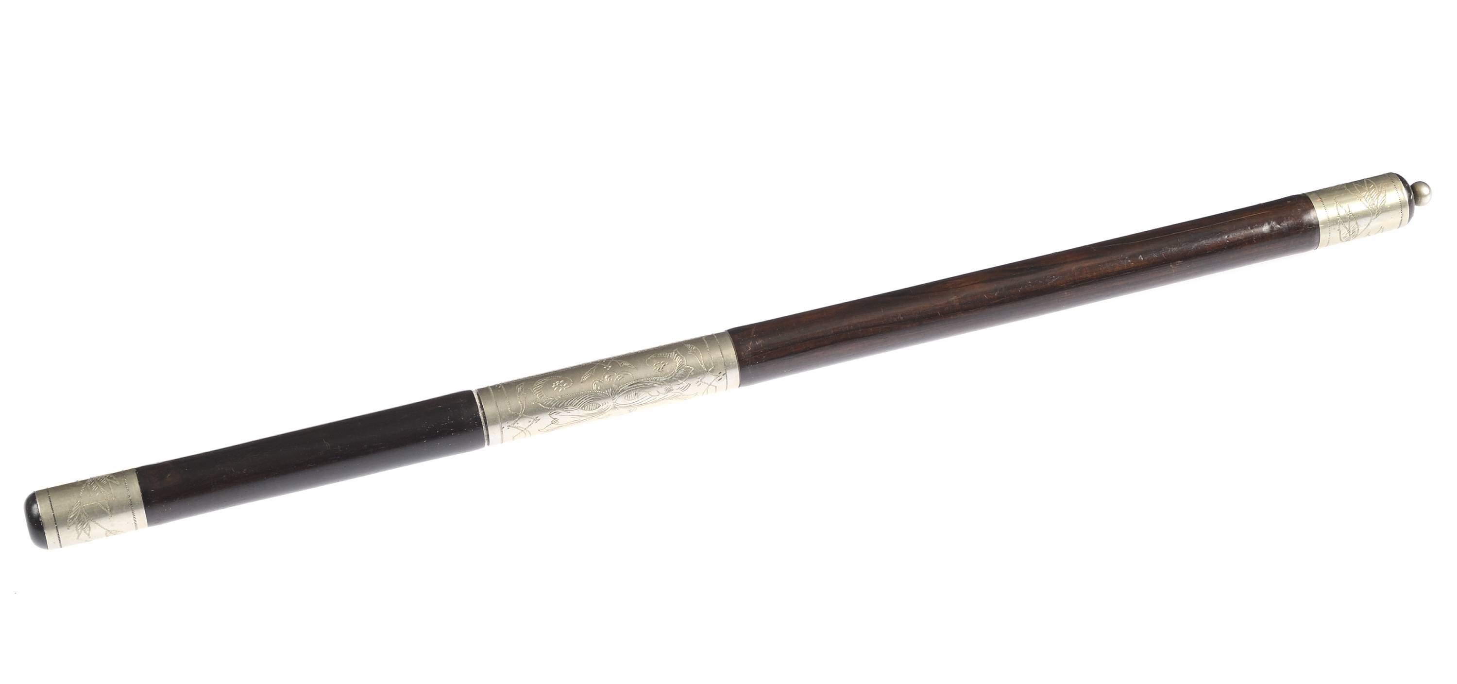 En bois d'ébène et maillechort, gravé de feuillages.