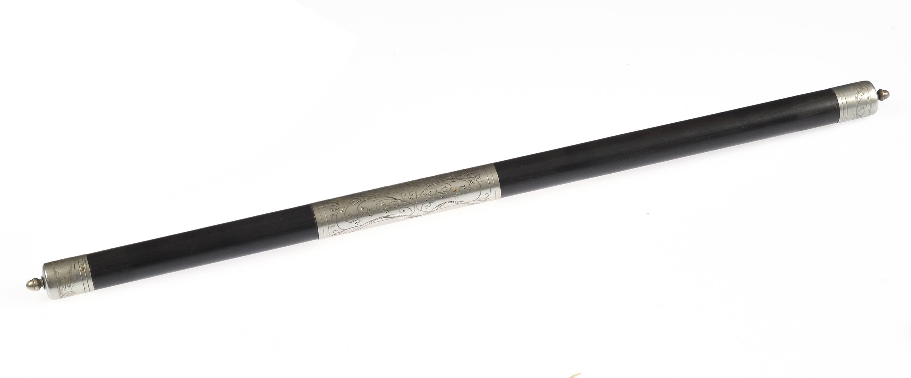 En bois d'ébène et maillechort. Gravé de feuillages.