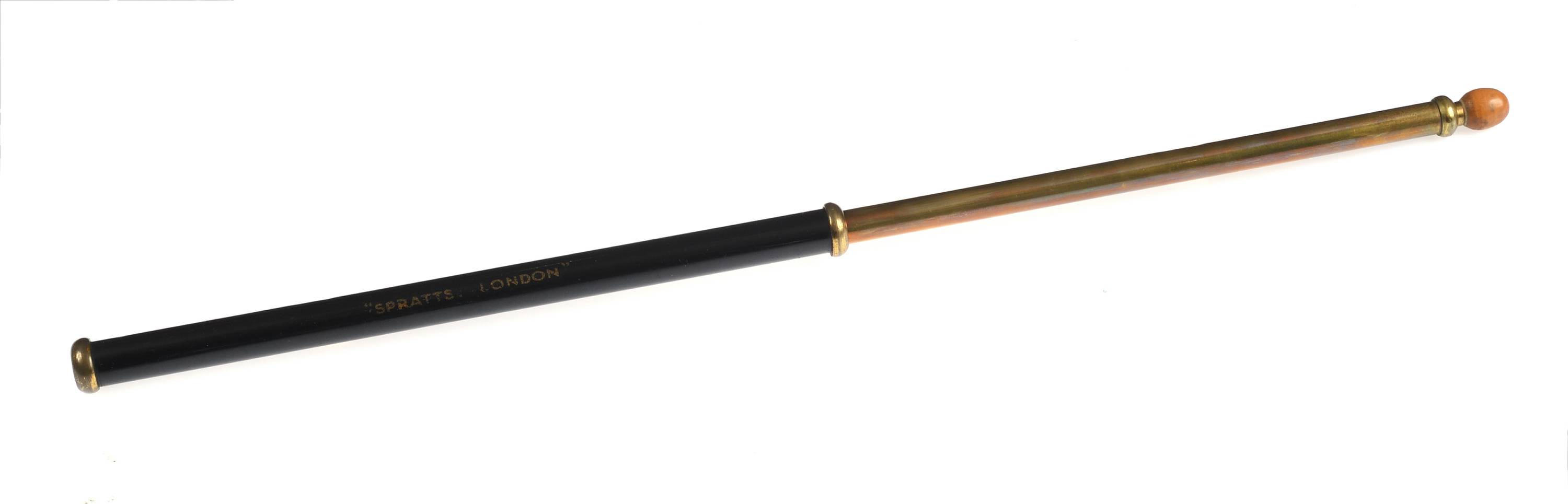 En résine, laiton et petite boule en buis. Marque " SPRATTS LONDON/ Made in England". Avec bras télescopique. L : 58 cm.