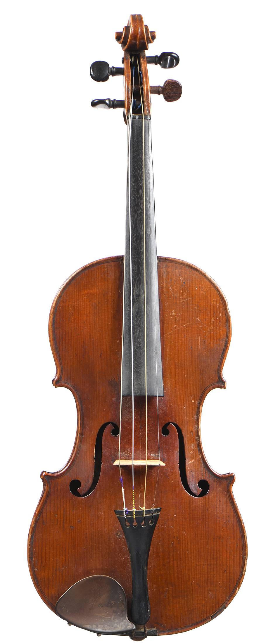 portant une étiquette "PIROT... 1815". Fond d'une pièce en érable. Vernis brun orangé. Avec boite et archet. 362 mm.
