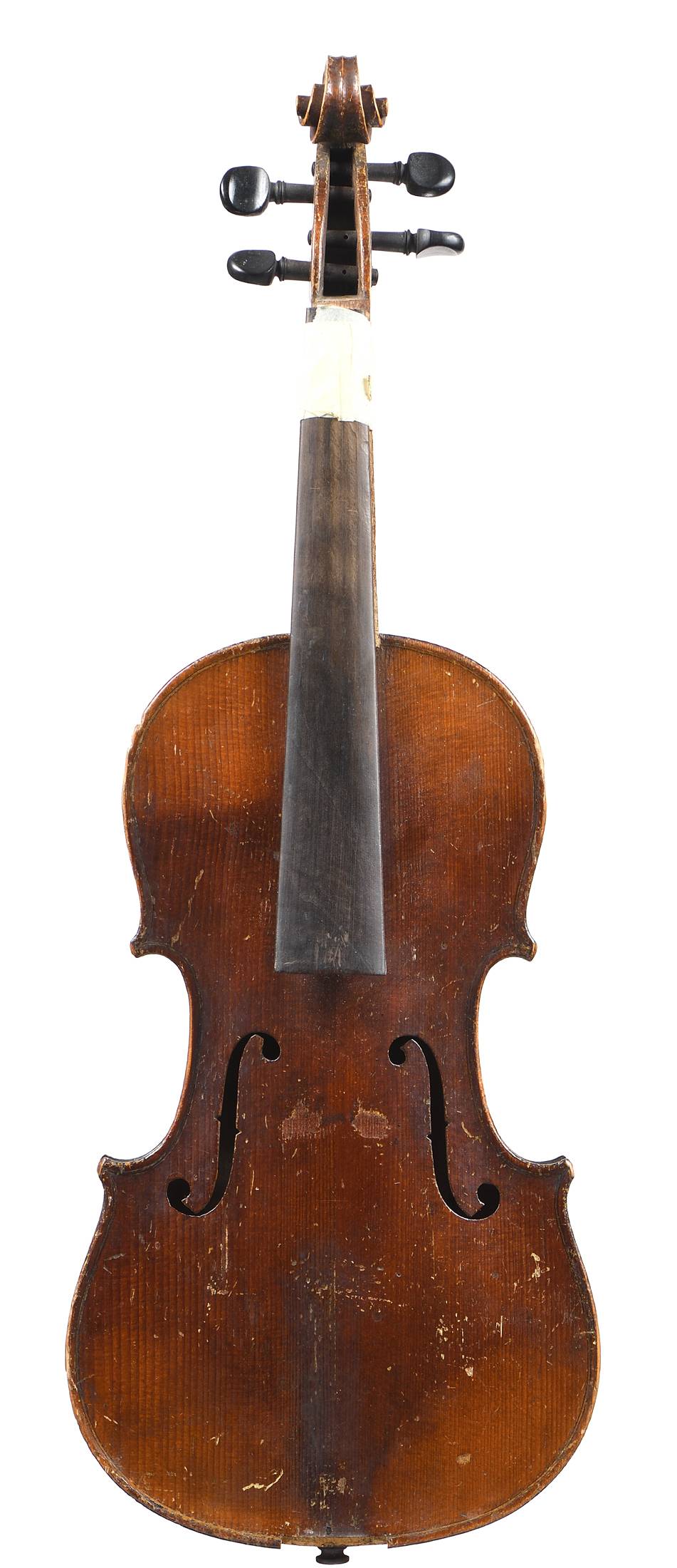 Sans étiquette. Fond de deux pièces en érable. Vernis brun doré. Diverses usures. 360 mm.
