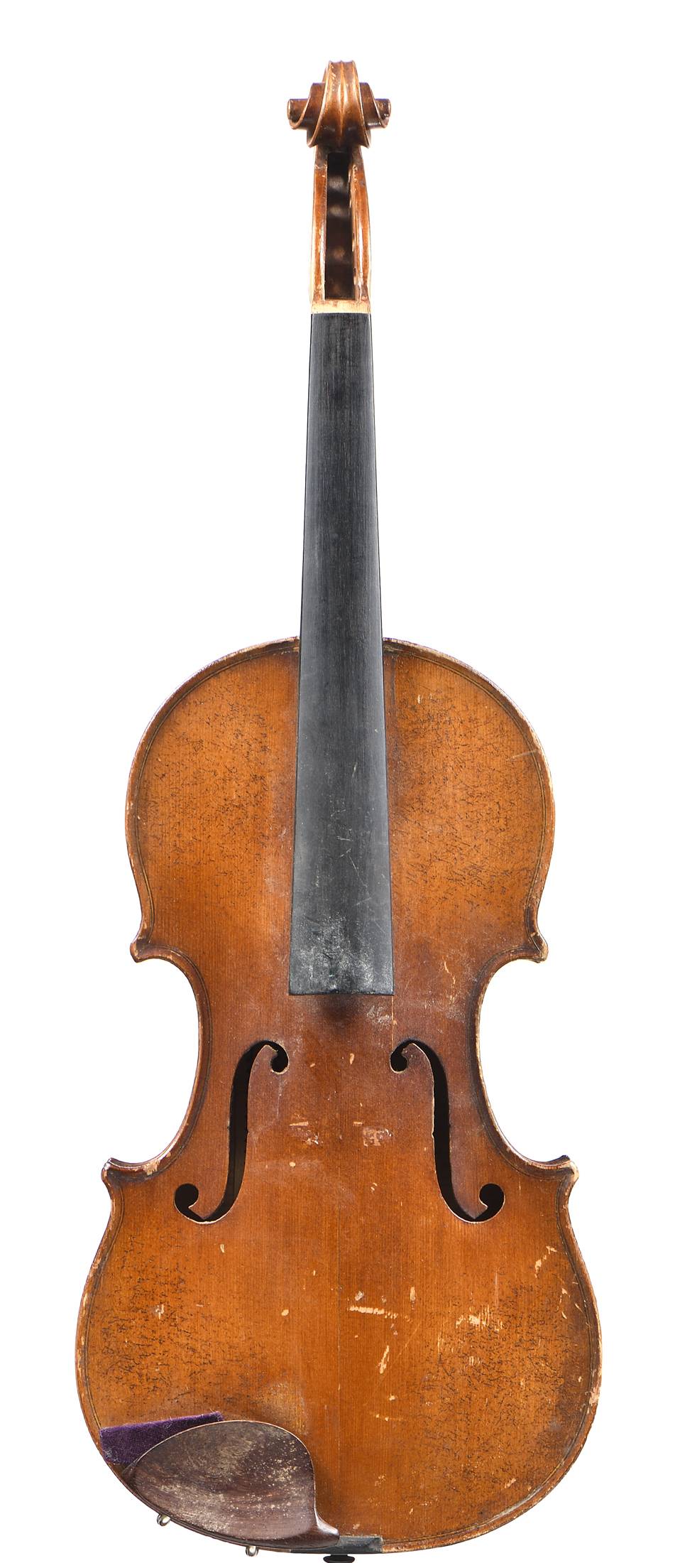 - Violon Allemand avec étiquette manuscrite "N°218". Marque au fer d'une étoile au talon du manche. Restauration à la table. 360 mm.