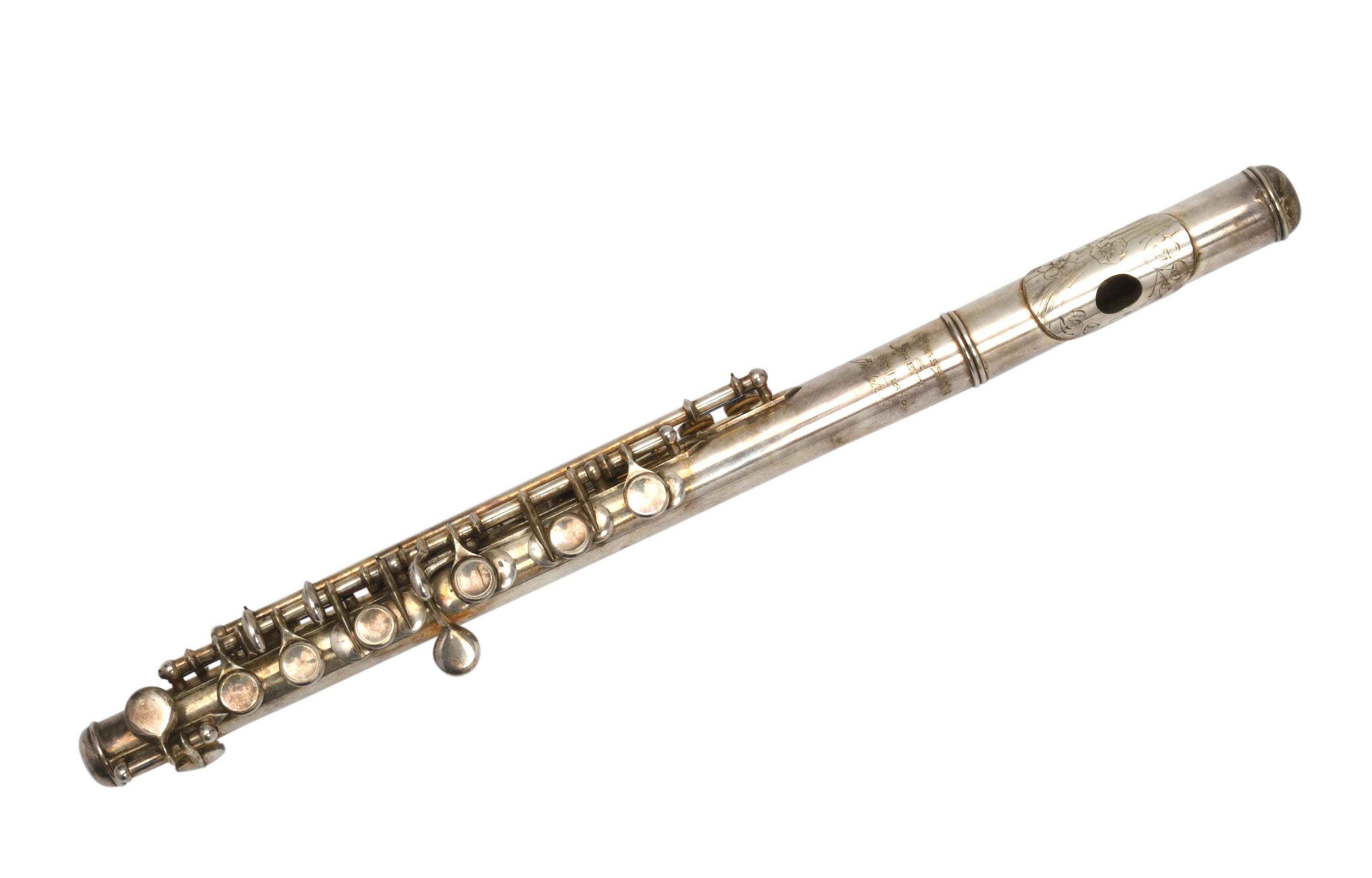En métal argenté. Plaque d'embouchure gravée de fleurs et feuillages. A restaurer.