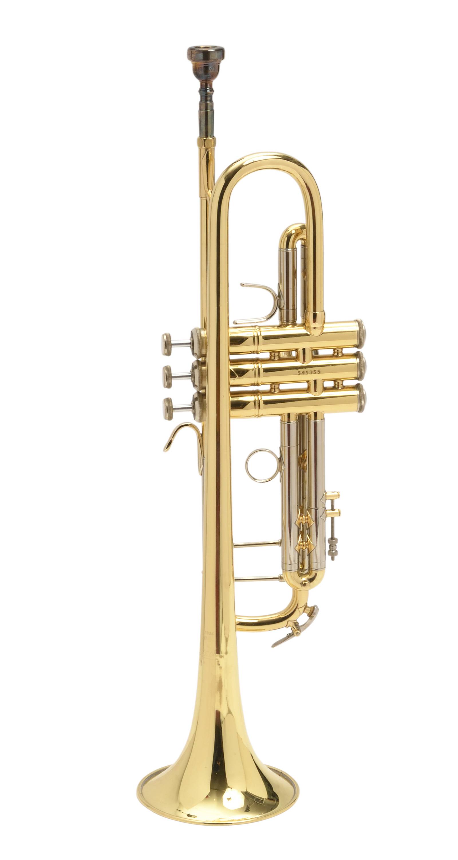 En laiton verni. Portant la marque "Vincent BACH Stradivarius model 37... Elkhart, USA". Numéroté 545355. Avec housse