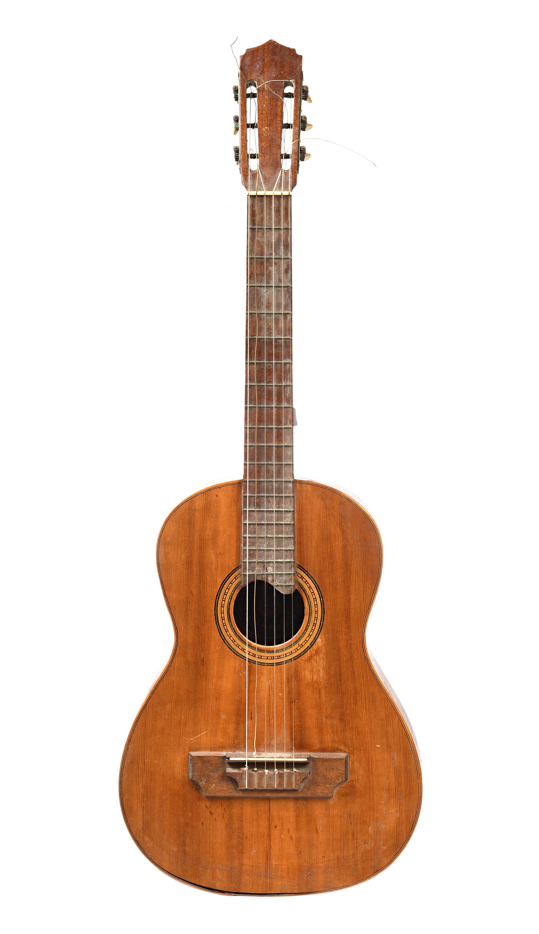Une guitare ancienne portant l'étiquette "BELLIPER...".
