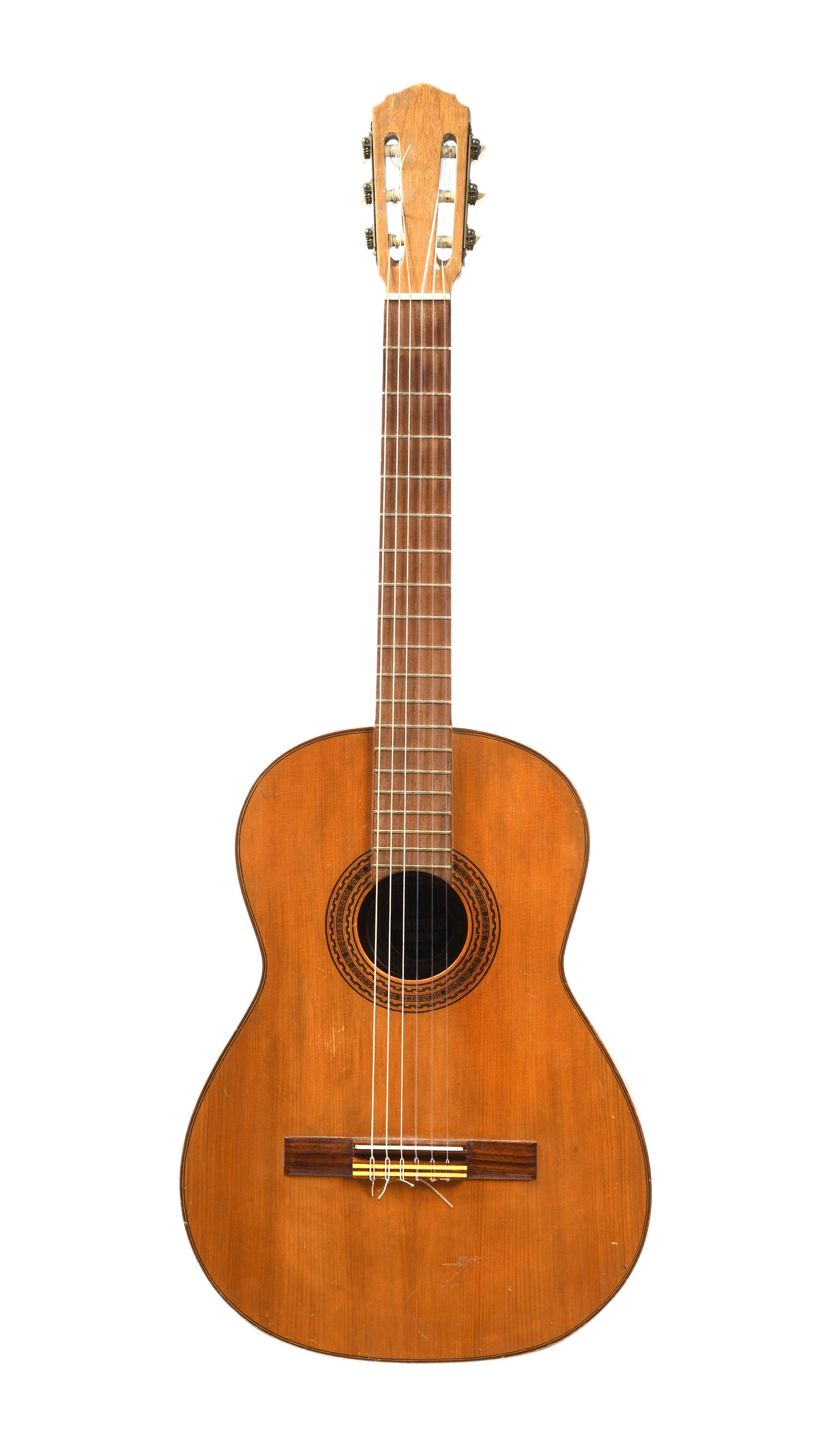 Une guitare classique portant une étiquette "Juan ESTRUCH Barcelona, Espana".