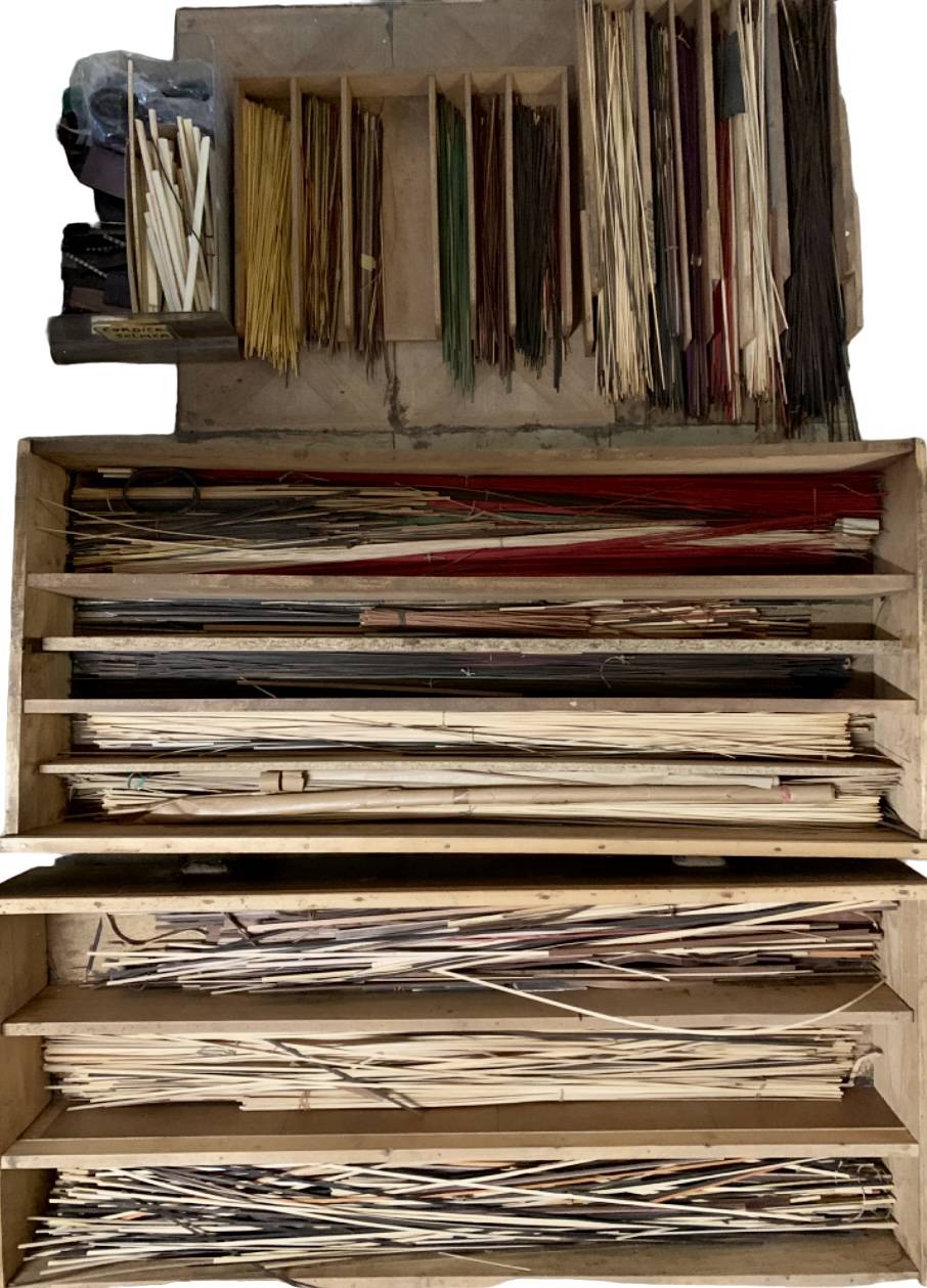 Un important lot de filets de guitare dans différentes essence de bois. En l'état.
