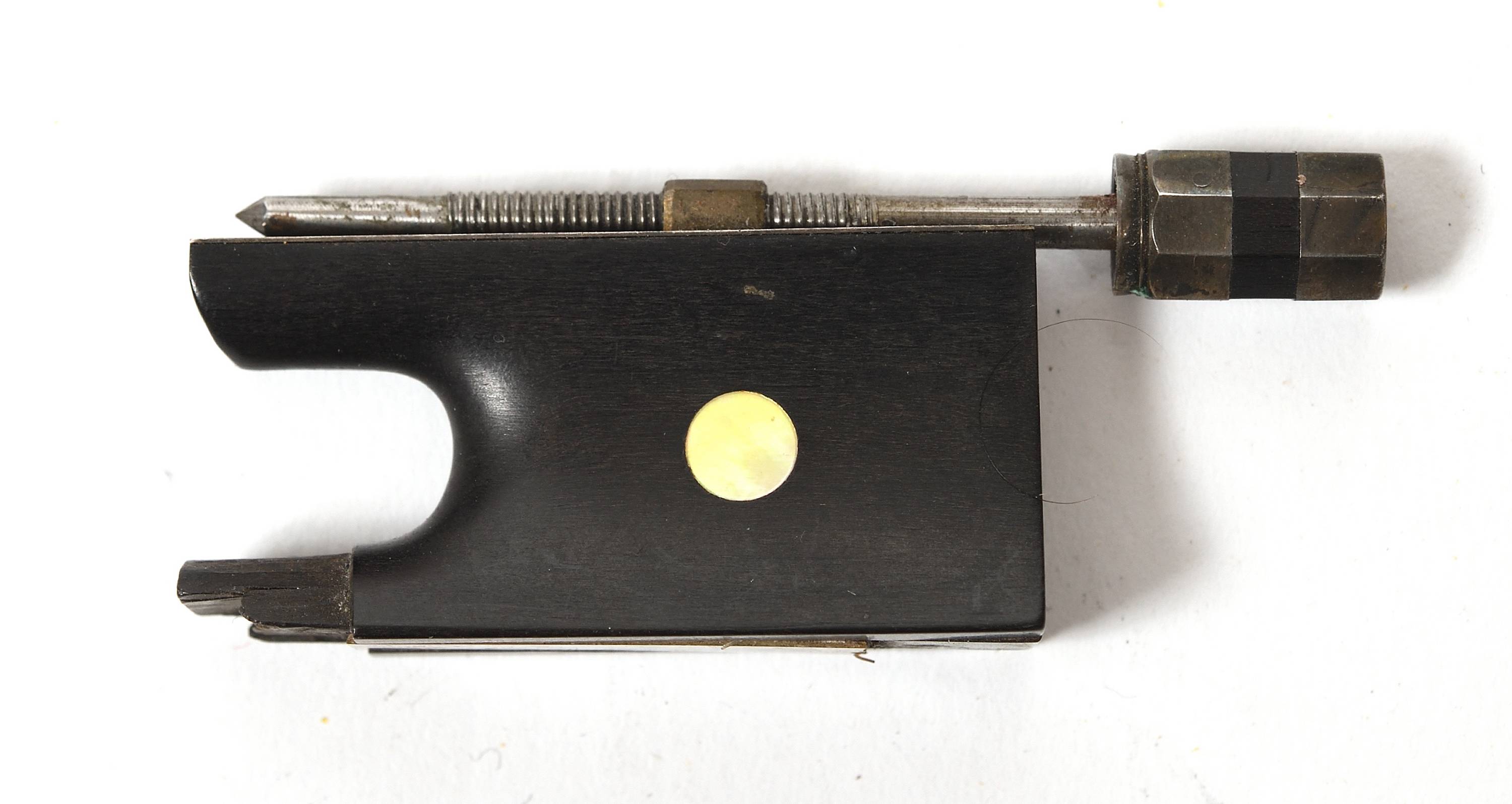 Hausse d'archet en bois d'ébène et argent. Manque le passant.