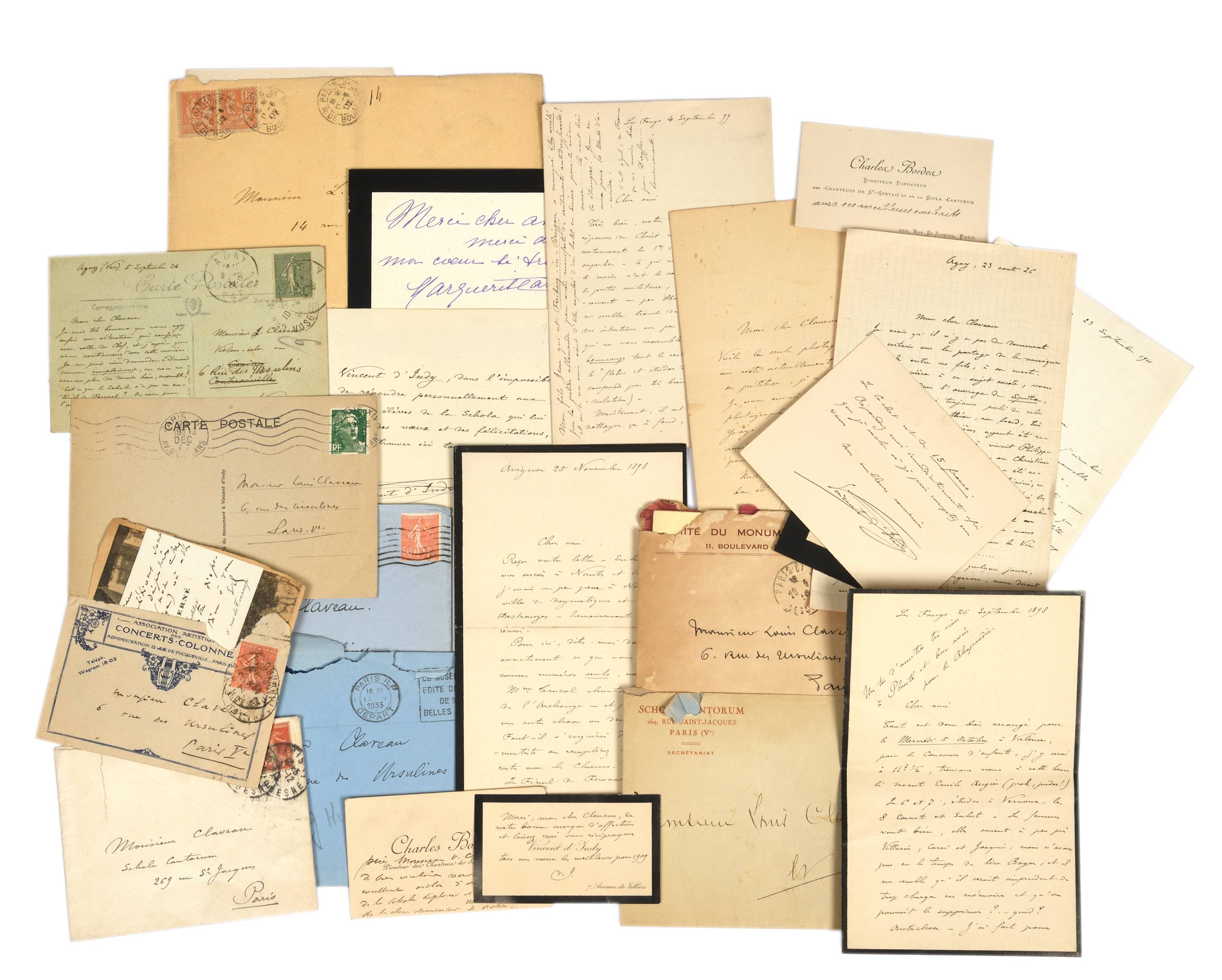 un ensemble de 25 lettres autographes adressées à Louis Claveau, Musicien et co-fondateur de la Schola Cantorum.