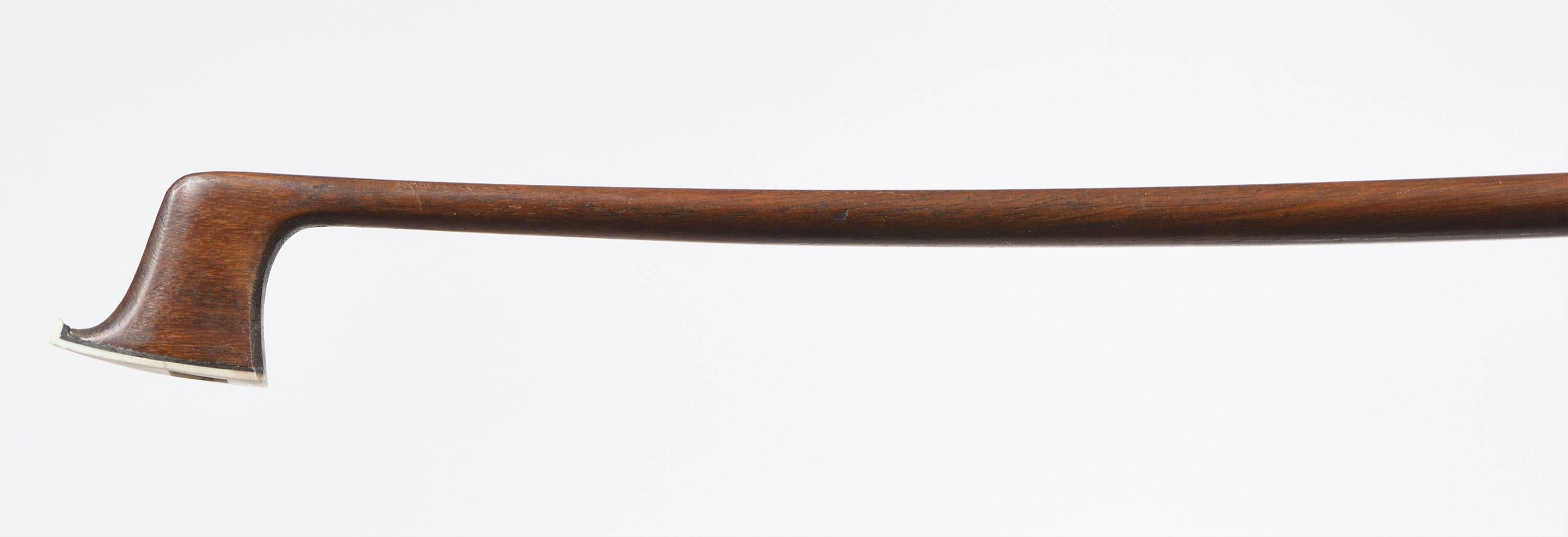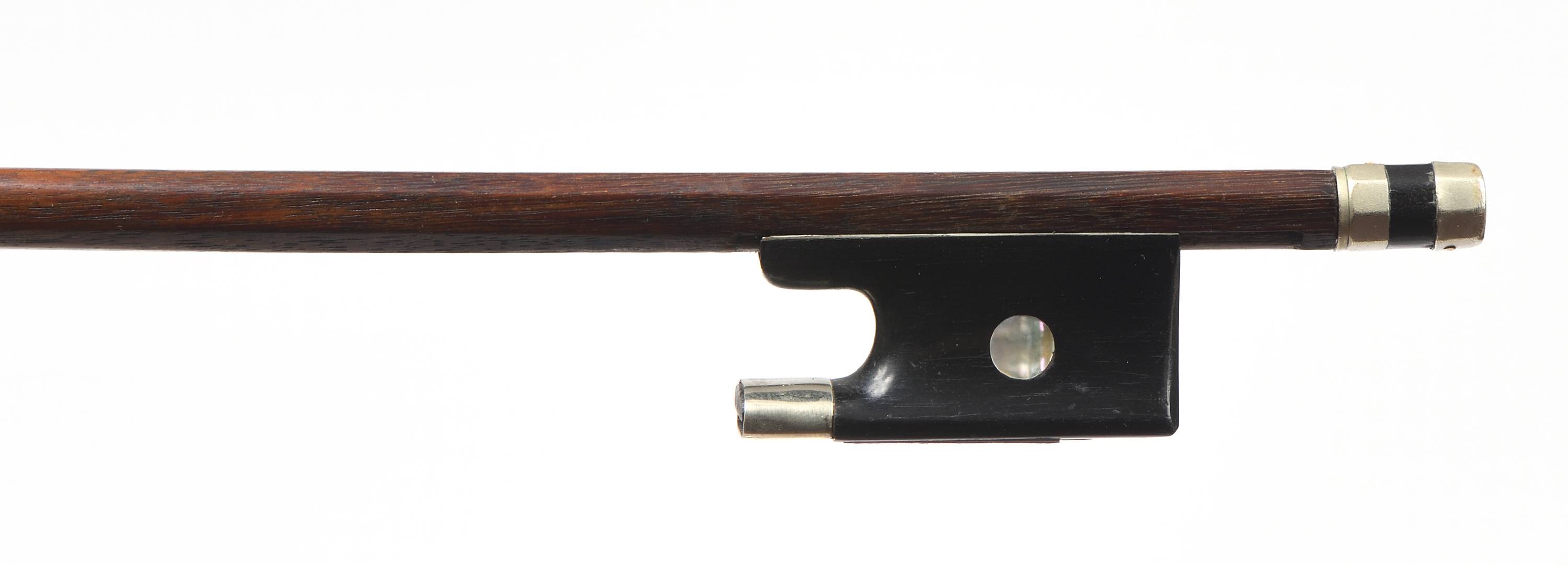 fait chez Jerome Thibouville Lamy, probablement par JJ MARTIN. Baguette ronde en bois de pernambouc. Hausse en bois d'ébène, monté argent. 730 mm. 45 g sans mèche, ni garniture.