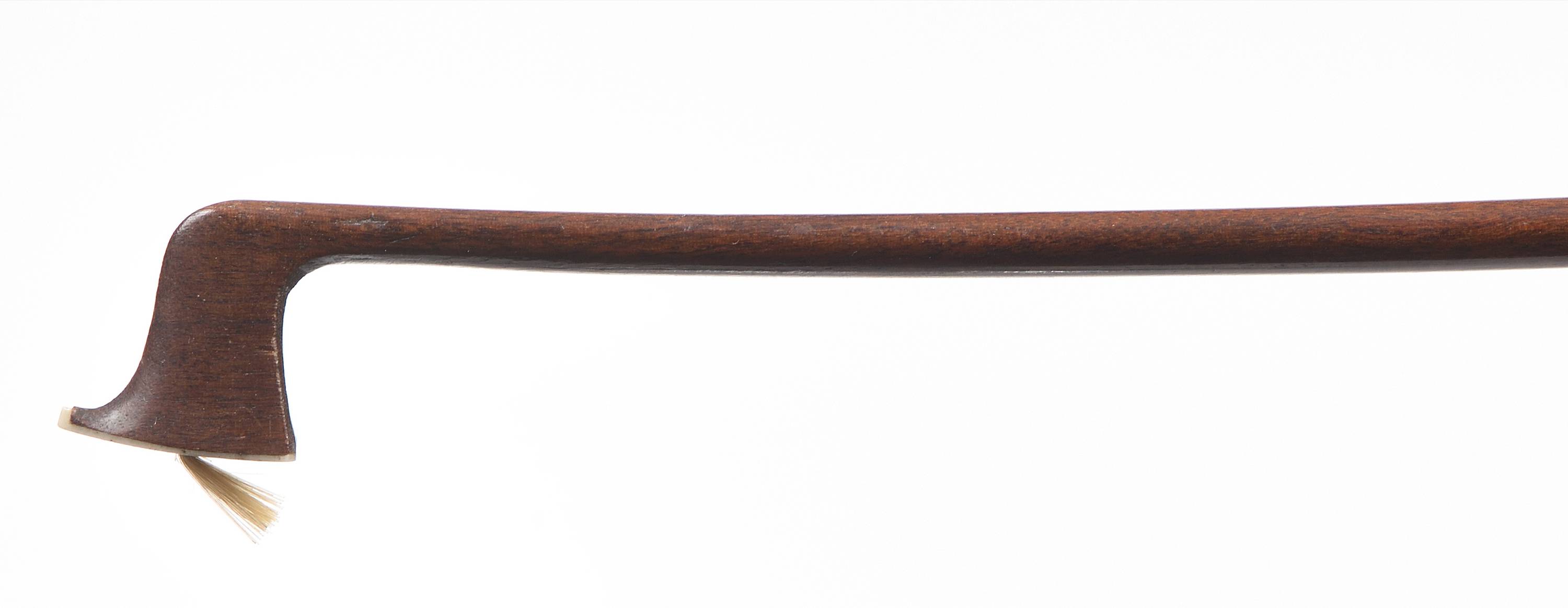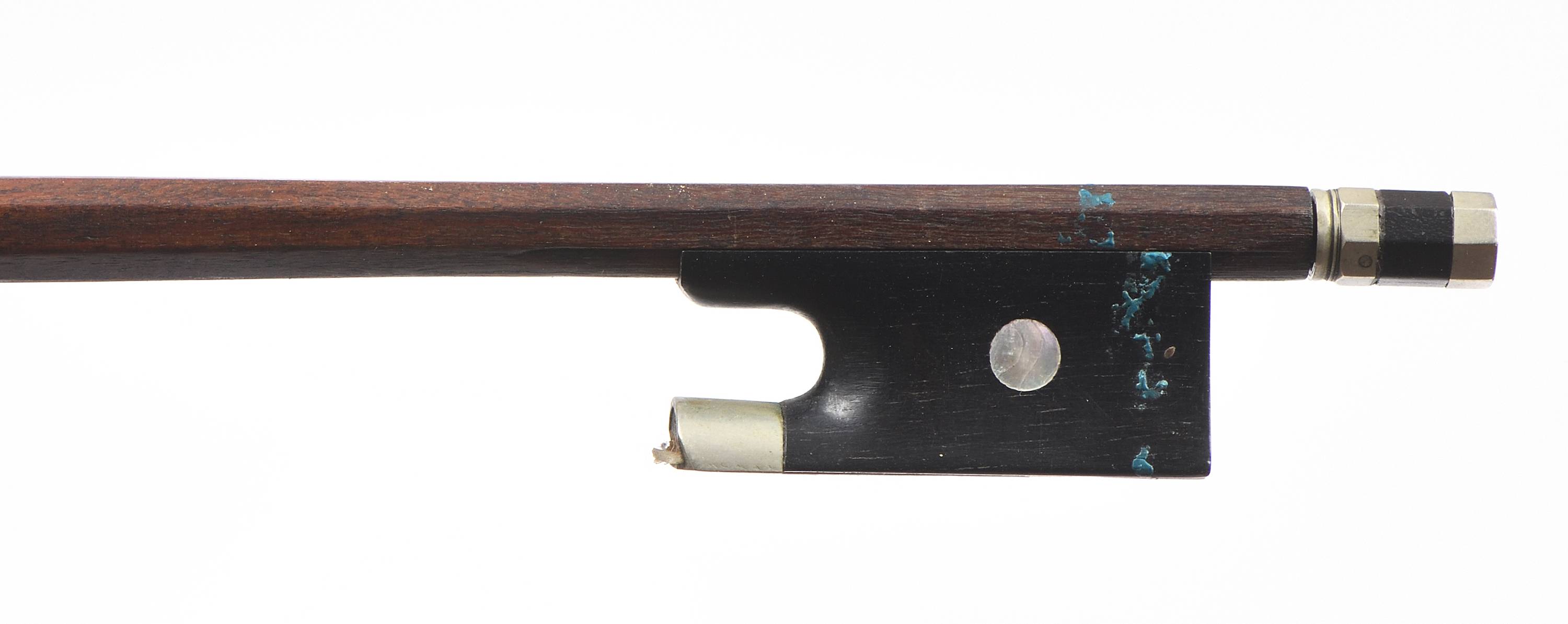 Baguette ronde en bois de pernambouc. Hausse ébène, sans coulisse, monté maillechort. 726 mm. 46 g sans mèche.