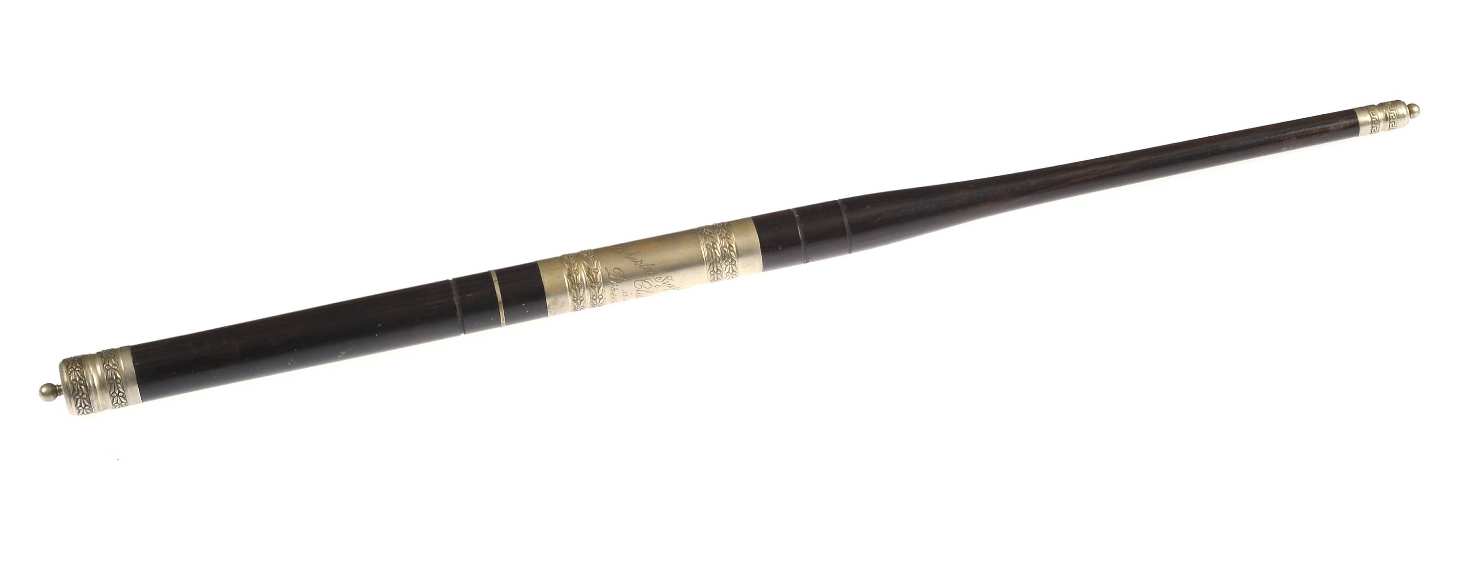 En bois d'ébène et maillechort. Gravé "Orchestre Symphonique Clokers. A bon Directeur".