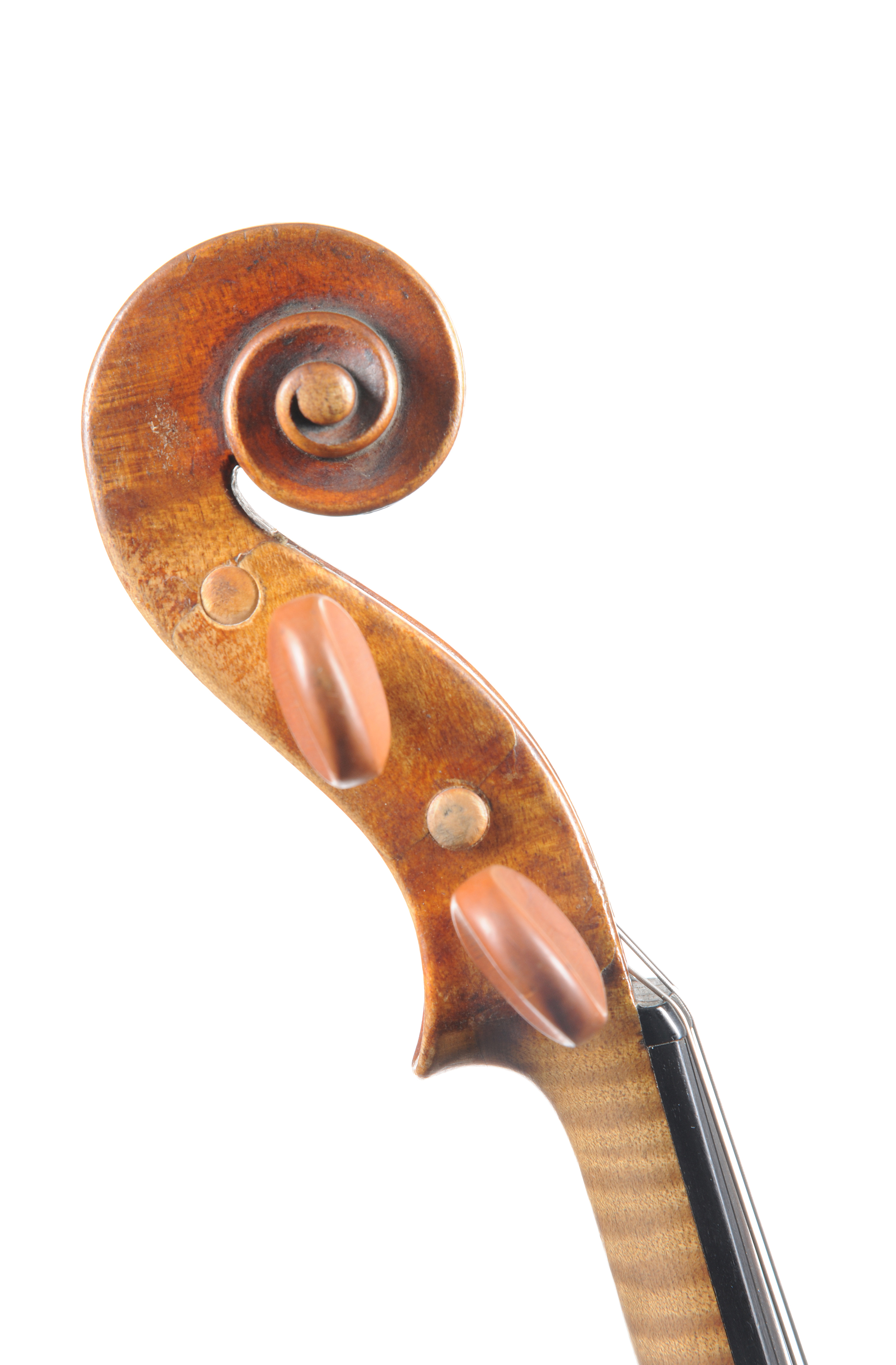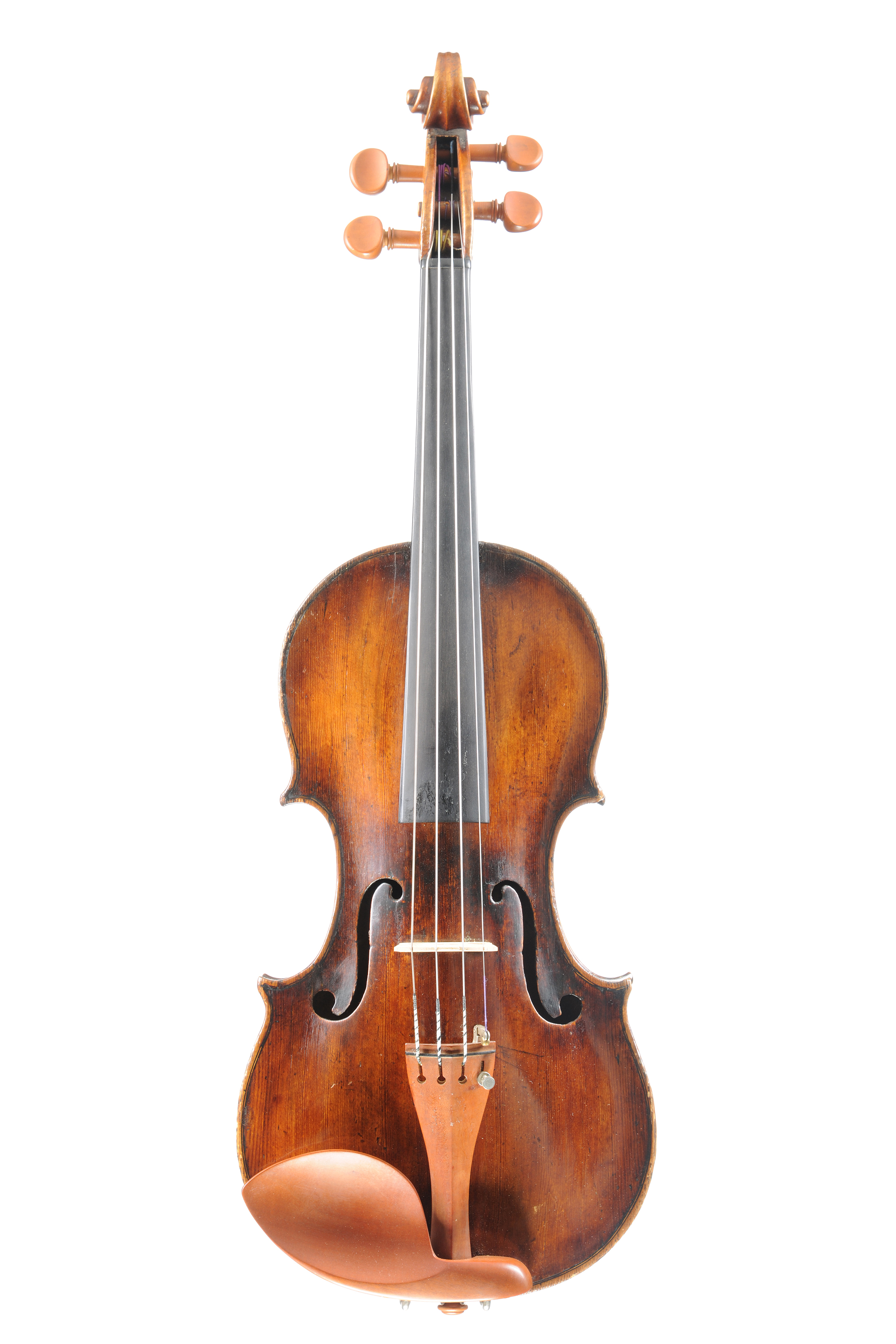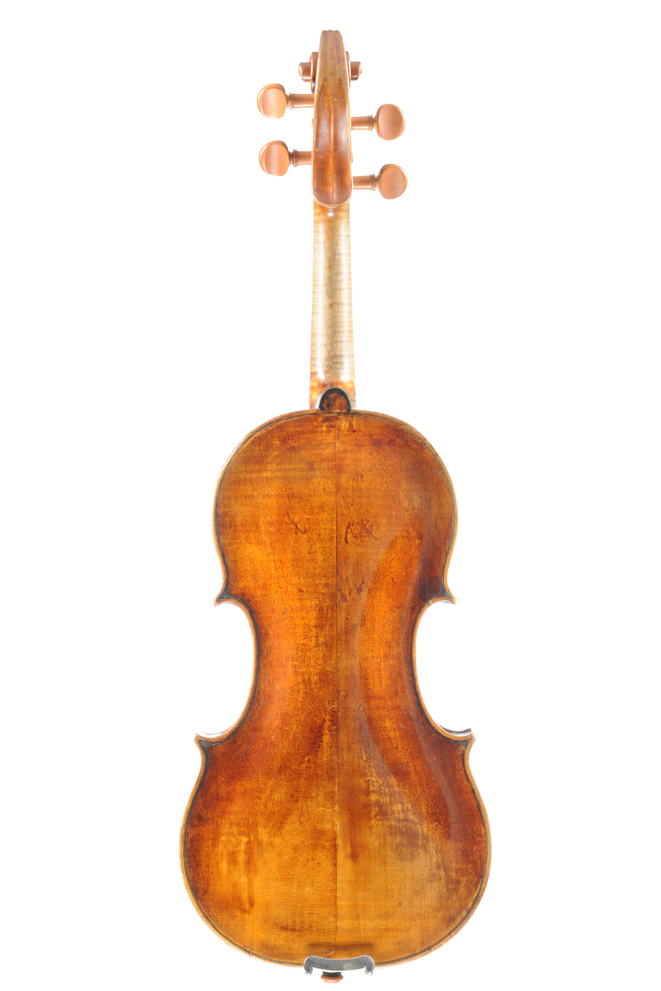 Intéressant violon fait au début du XVIIIe siècle, portant une étiquette "Amati,1632". Vernis brun foncé sur fond doré. 351mm. Bon état de restauration.
