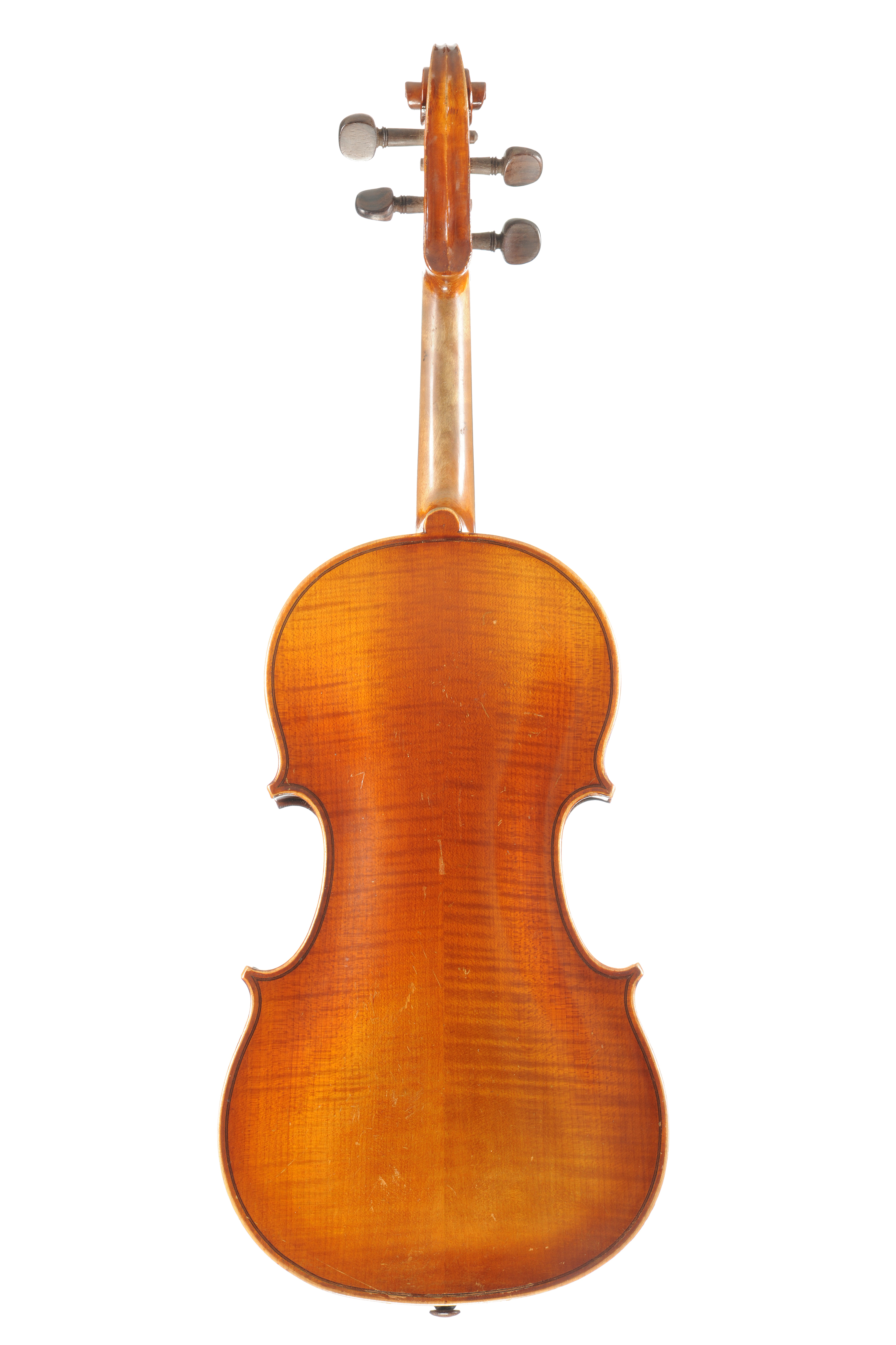 Violon portant une étiquette "fait sous la direction de Léon Bernardel", fait à Mirecourt au début du XXe siècle. Vernis brun doré. 362 mm. Avec Boite.