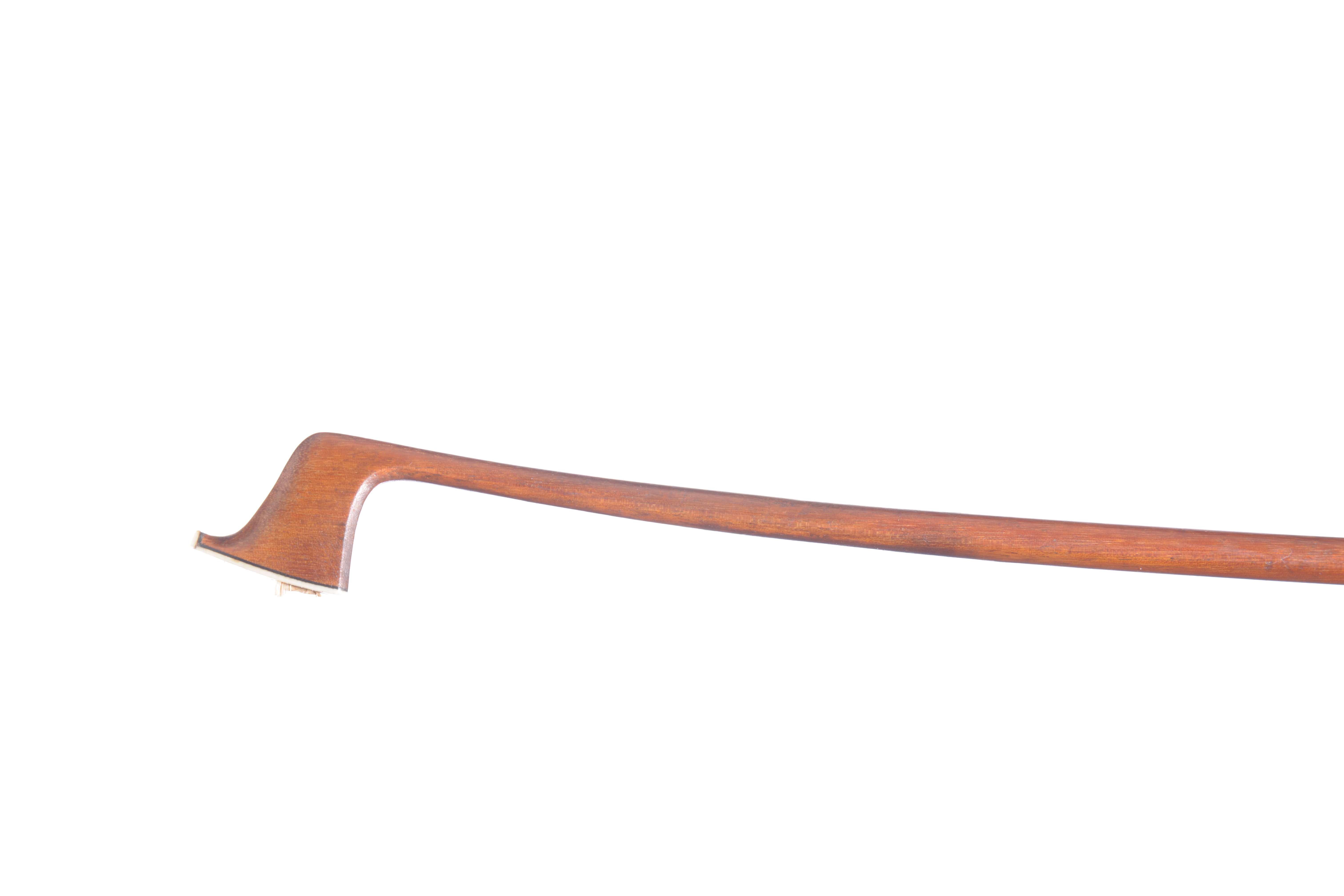 Archet d'alto, baguette en pernambouc portant la marque au fer de L.BAZIN, hausse ébène montée maillechort. 724 mm.