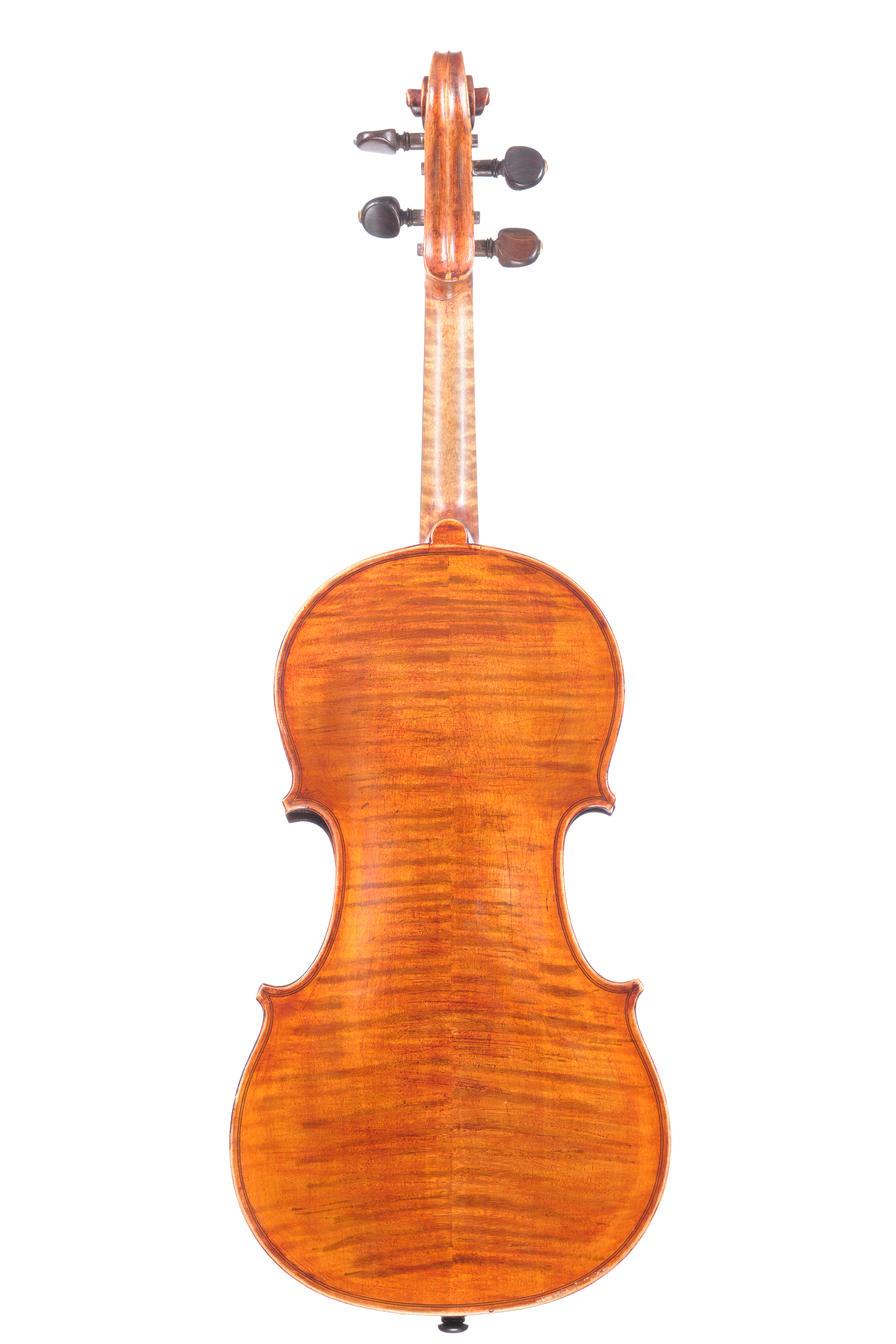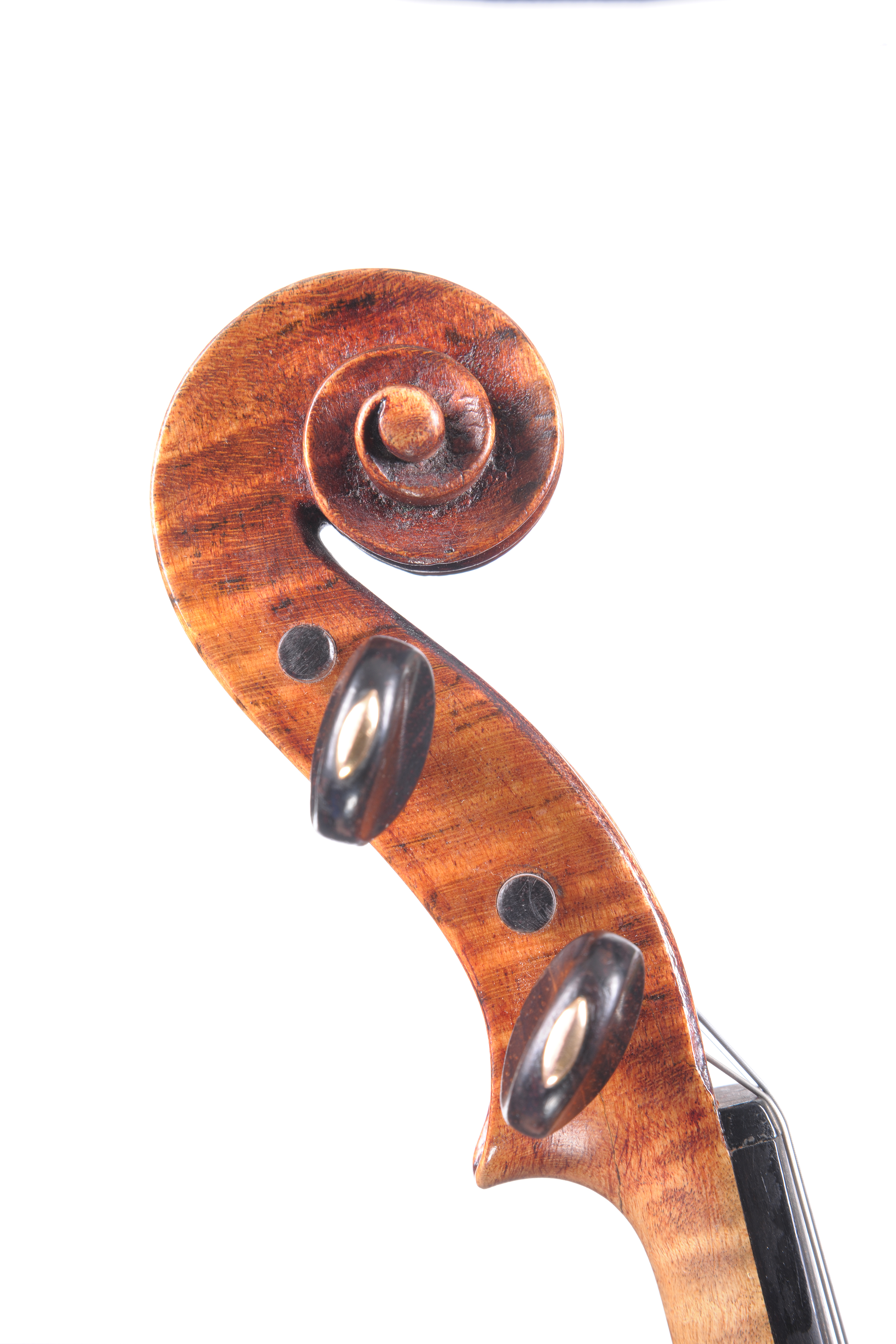 Violon français portant une marque apocryphe de Paul Kaul. Cassé et recollé à la tête, revernis brun orangé. 360mm.