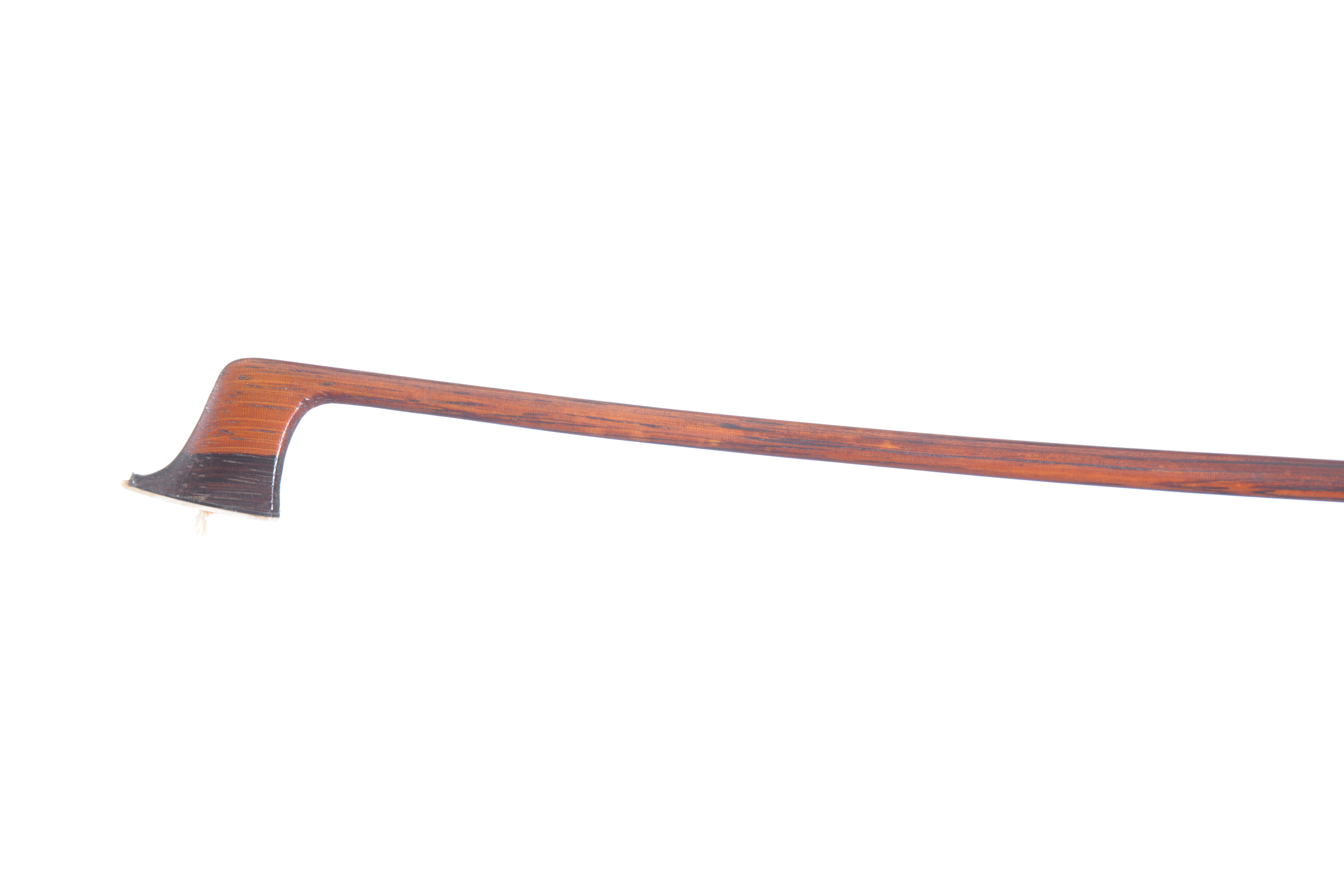Archet de violon fait au début du XIXe, école de Pageot. En bois exotique. 717mm. Monté maillechort.