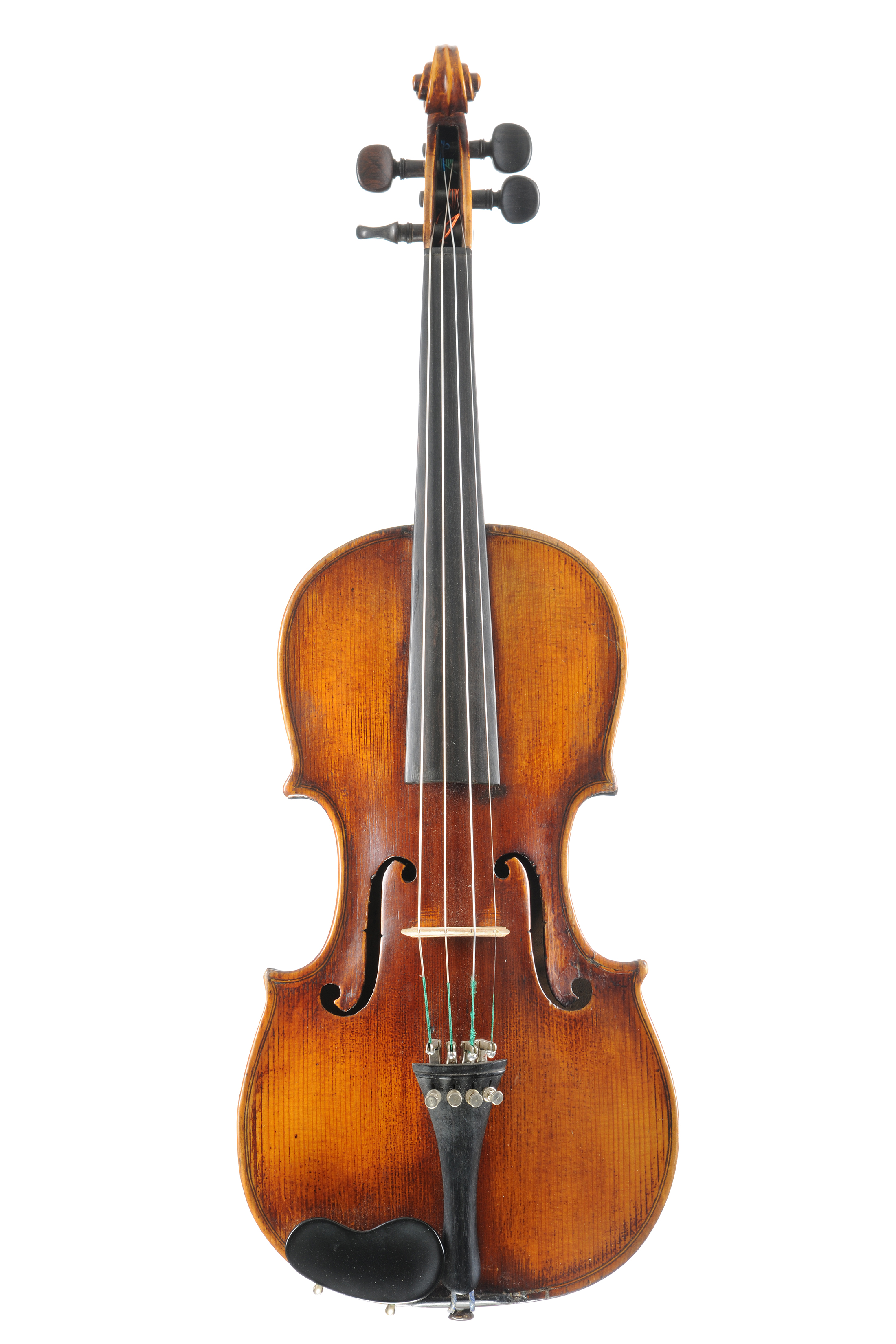 Violon baroque de Hopf. Fait au XIXe. Fond d'une pièce. Vernis brun sur fond doré. Il est marqué de trois étoiles en dessous du talon. 355 mm.