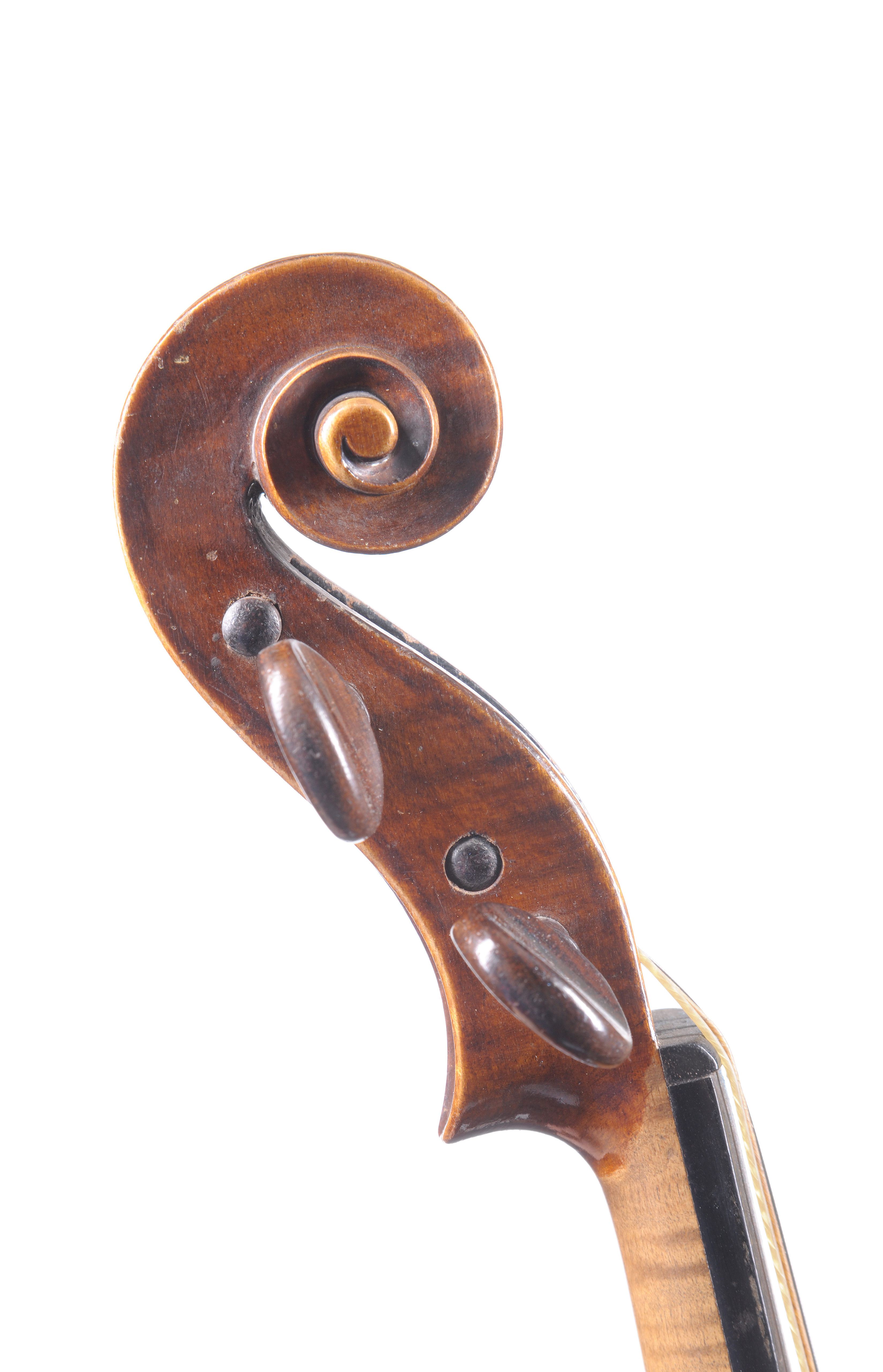 Violon portant une étiquette de Hugo à Paris, Année 1900. Fond de deux pièces. Vernis brun sur fond doré. Avec boite et deux archets. 359 mm.