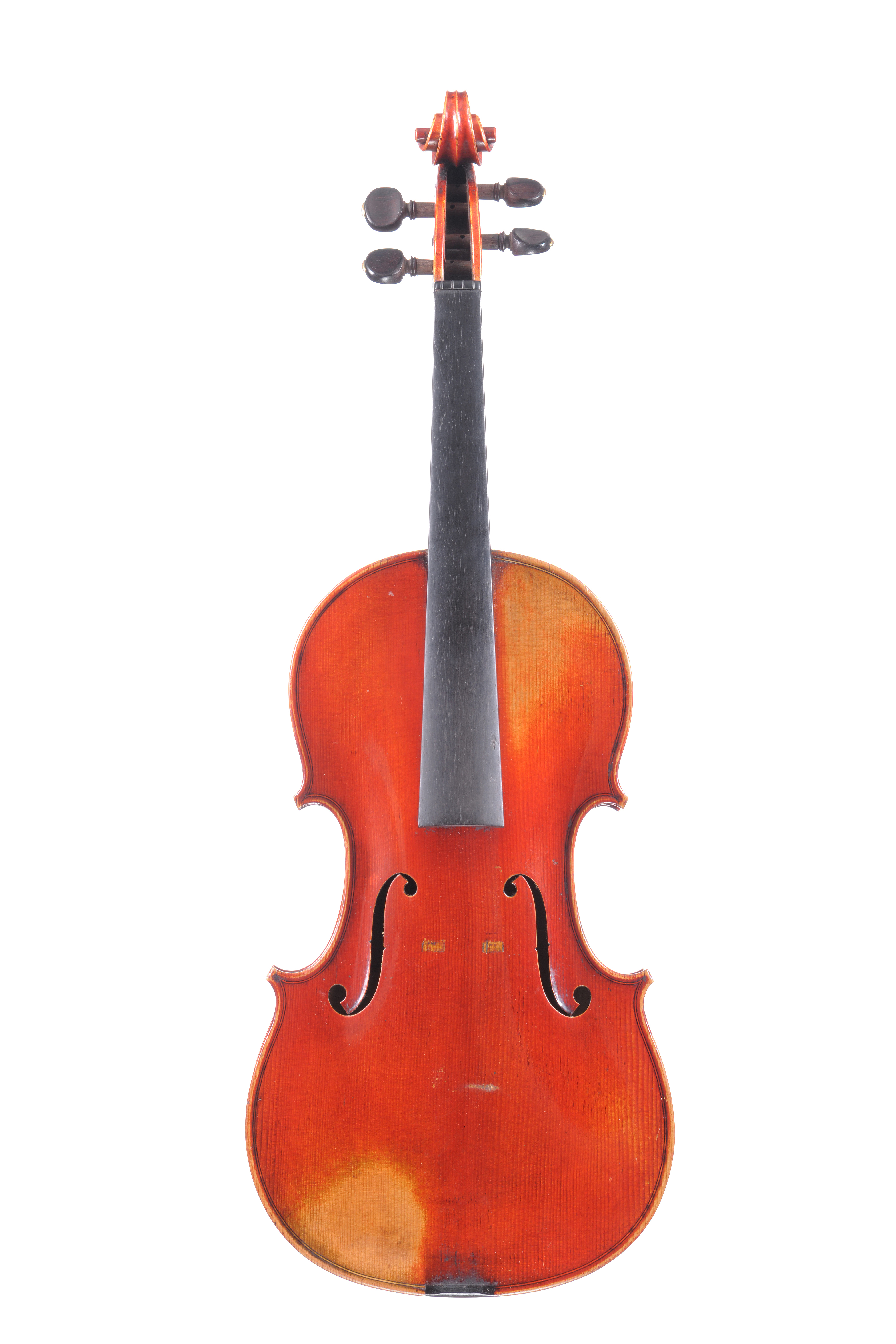 Violon portant une étiquette originale de Paul Lorange à Lyon, 1917 et une étiquette de Paul Beuscher à Paris. Fond de deux pièces avec un vernis rouge, doré. 361 mm.
