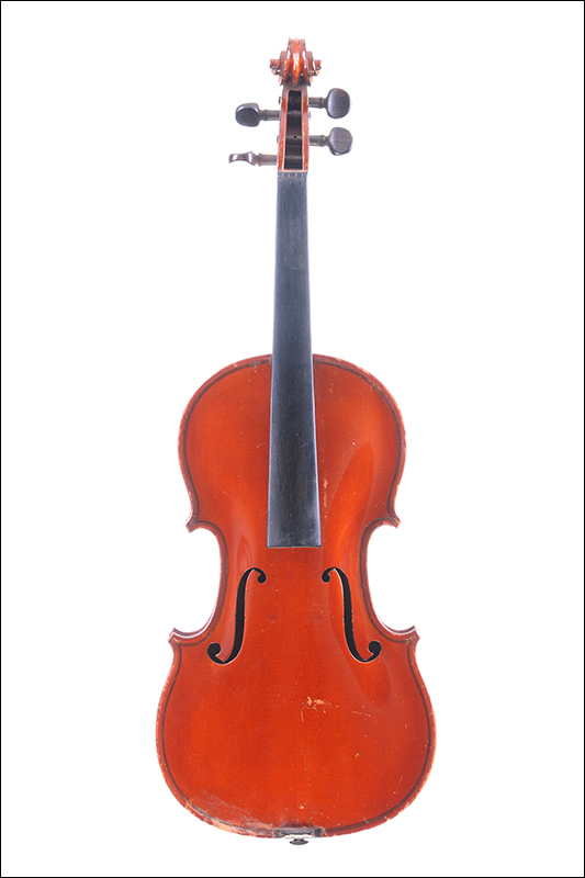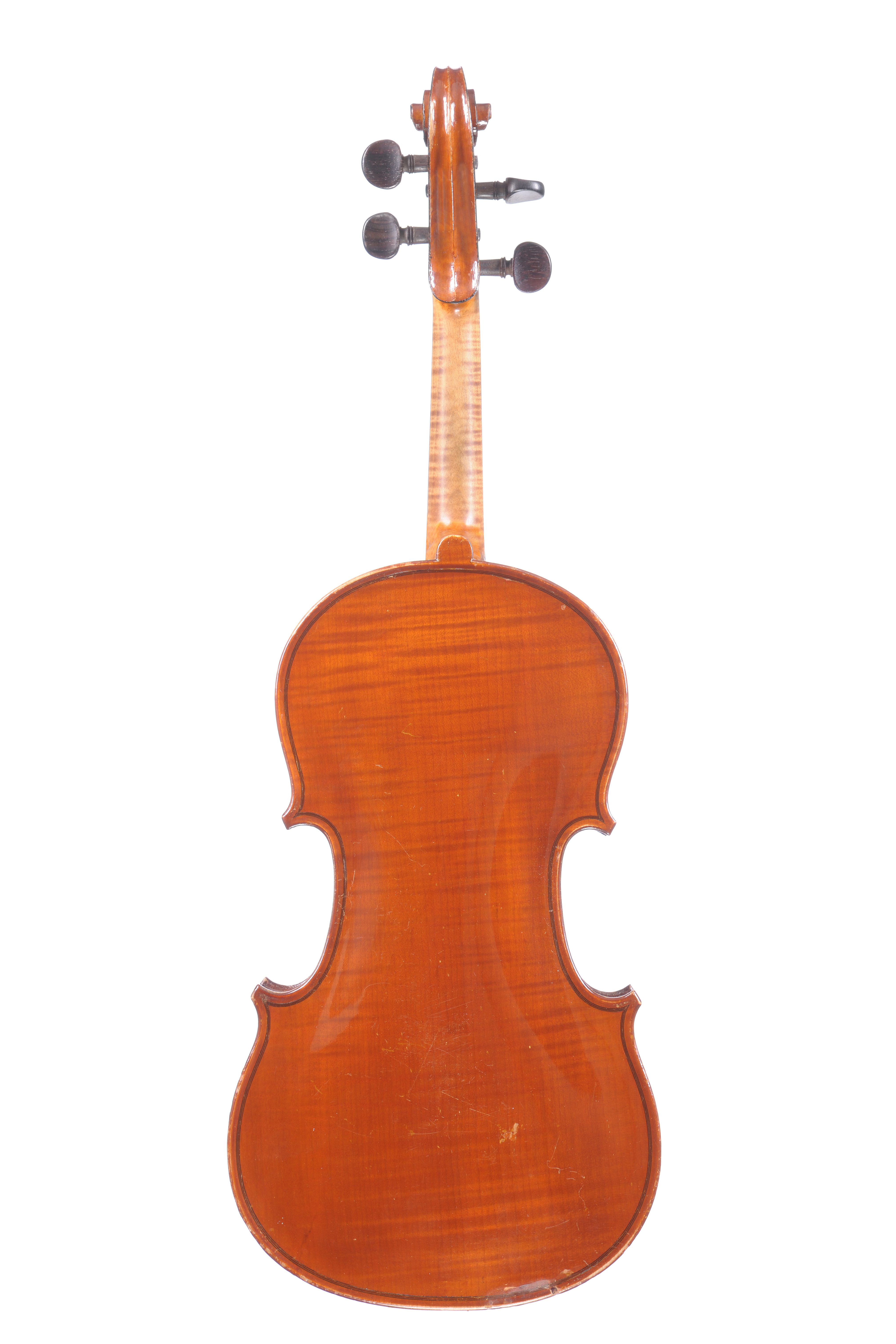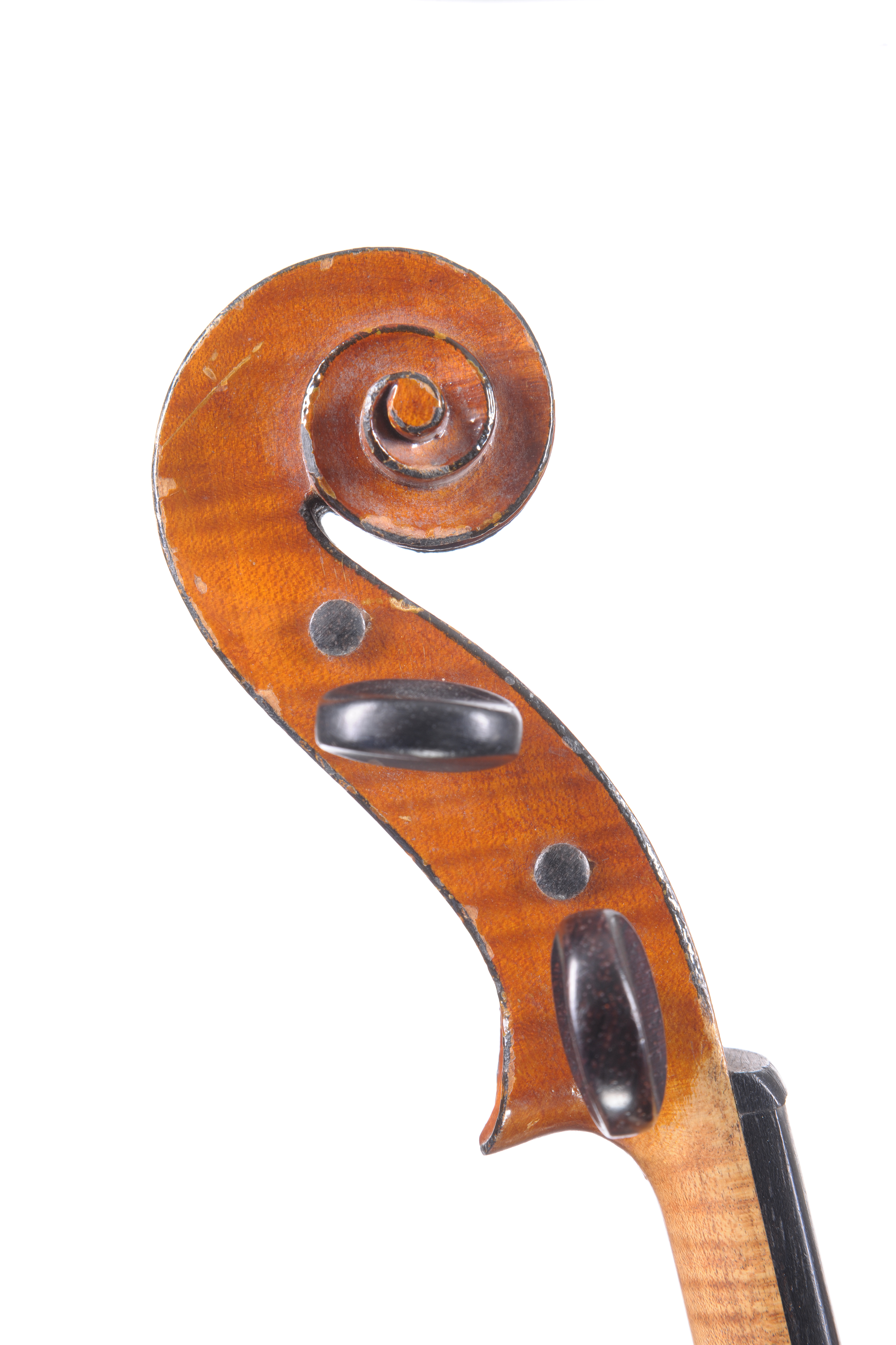 Violon portant la marque au fer de Nicolas Bertolini. Fond d'une pièce, vernis brun orangé. 356 mm.