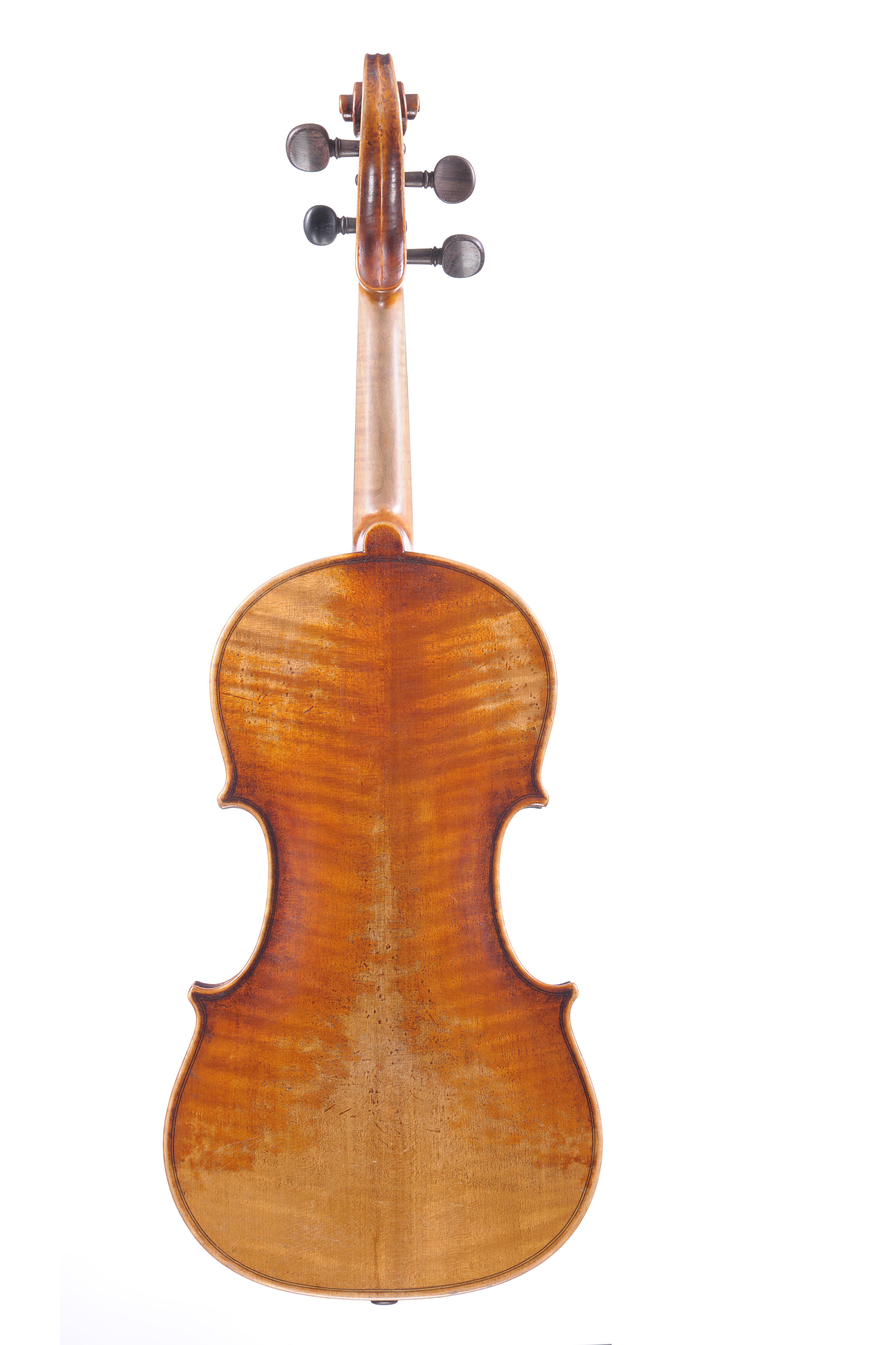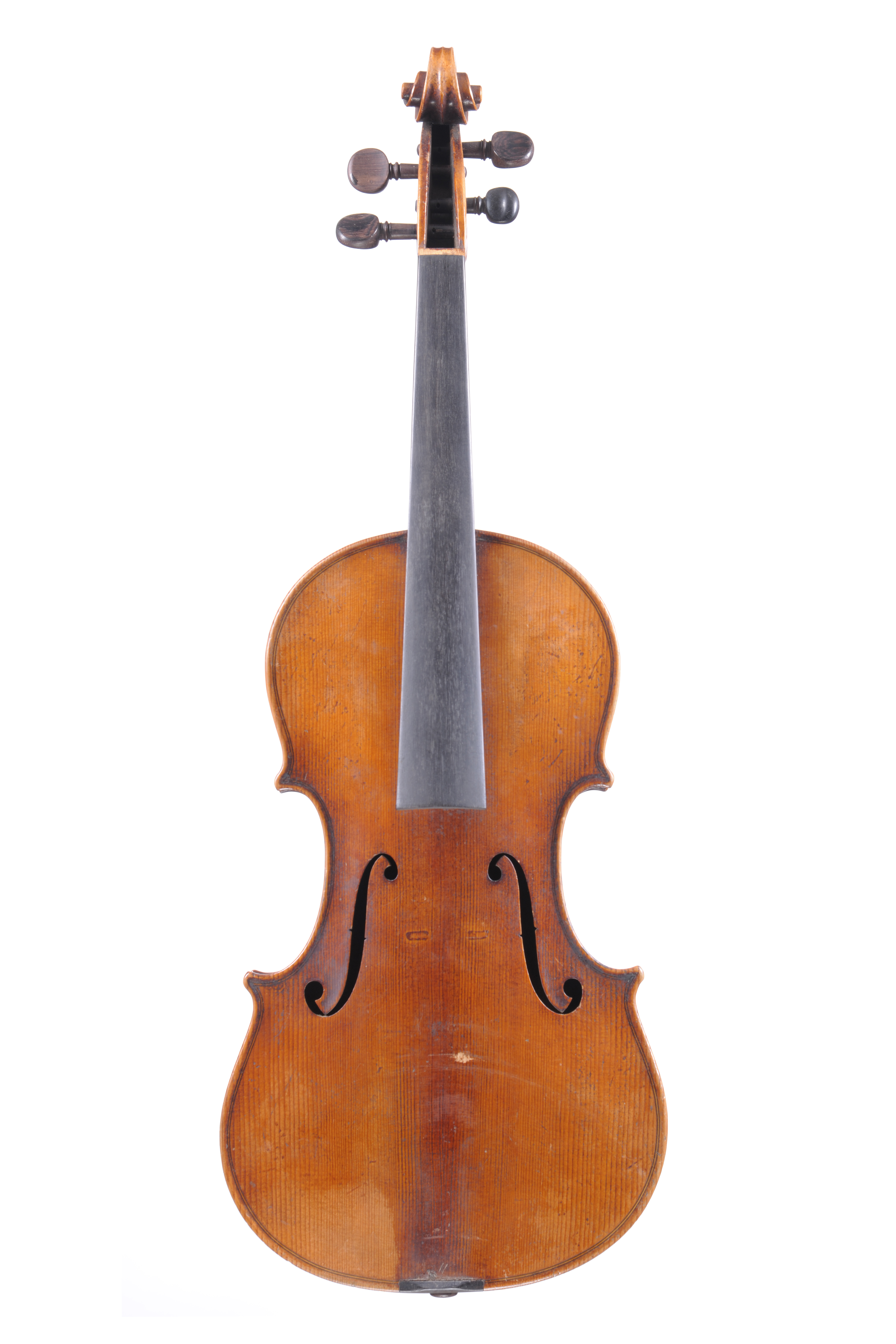 Violon Allemand fait vers 1930, portant une étiquette apocryphe de Joseph Guarnerius 1721. Bon état général, avec deux archets dont un 3/4 et sa boite. 356 mm.
