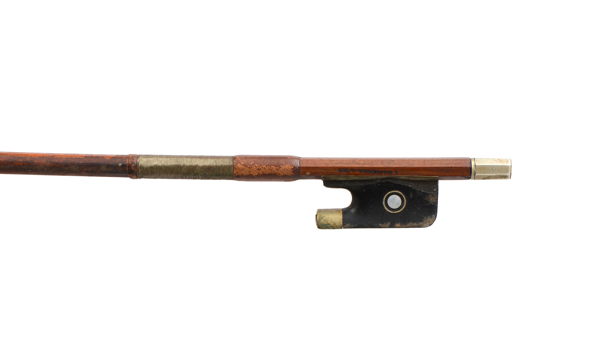 Fait pour Marissal à Lille dont il porte la marque. Baguette en pernambouc. Hausse ébène Montée maillechort. Il est nécessaire de faire un cheval de hausse. 698 mm. 65, 4g sans mèche, avec garniture argent sur soie.