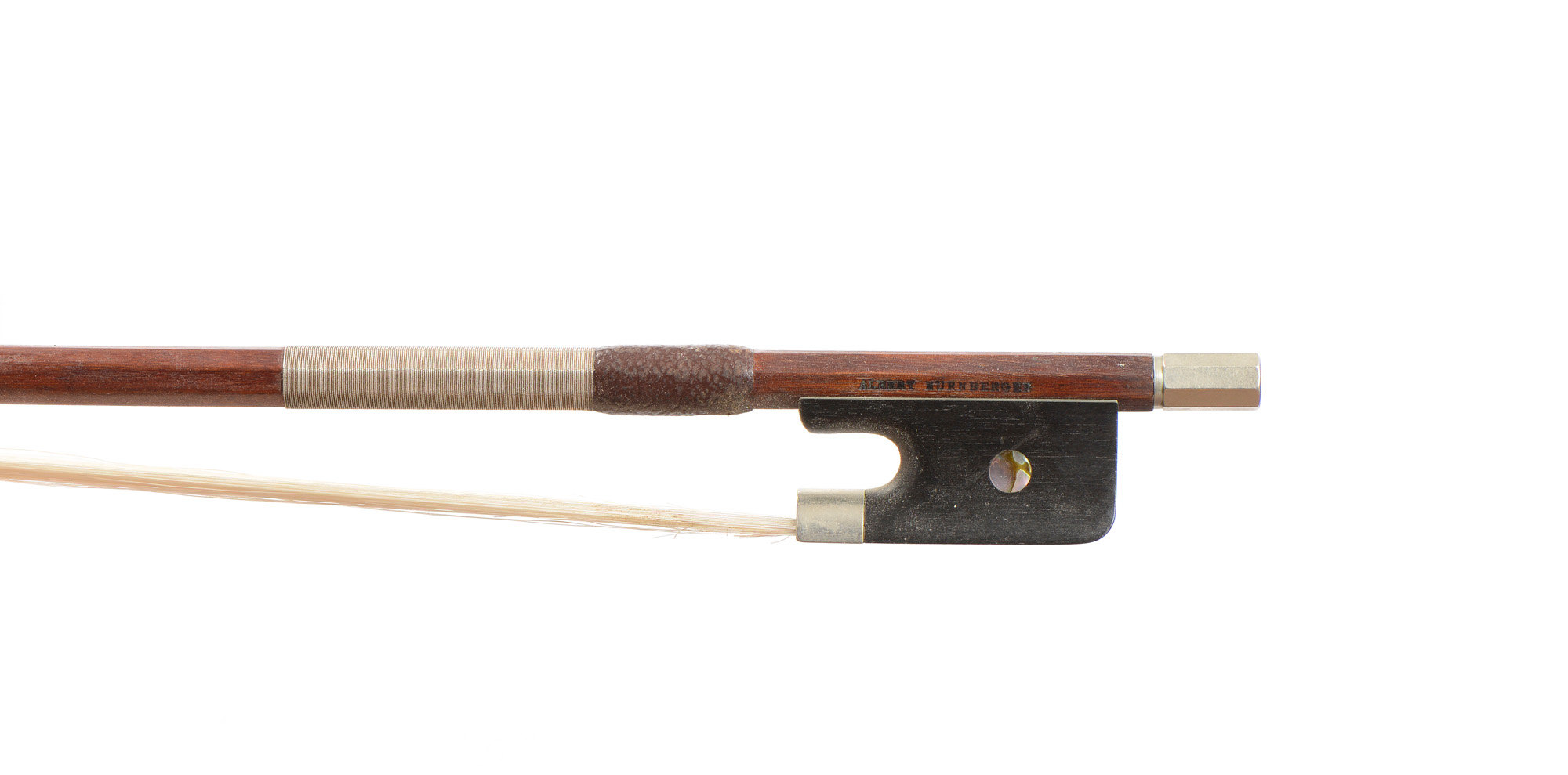 dont il porte la marque au fer. Baguette en pernambouc. Hausse ébène montée maillechort. 696 mm. 68 g avec garniture argent sur soie.