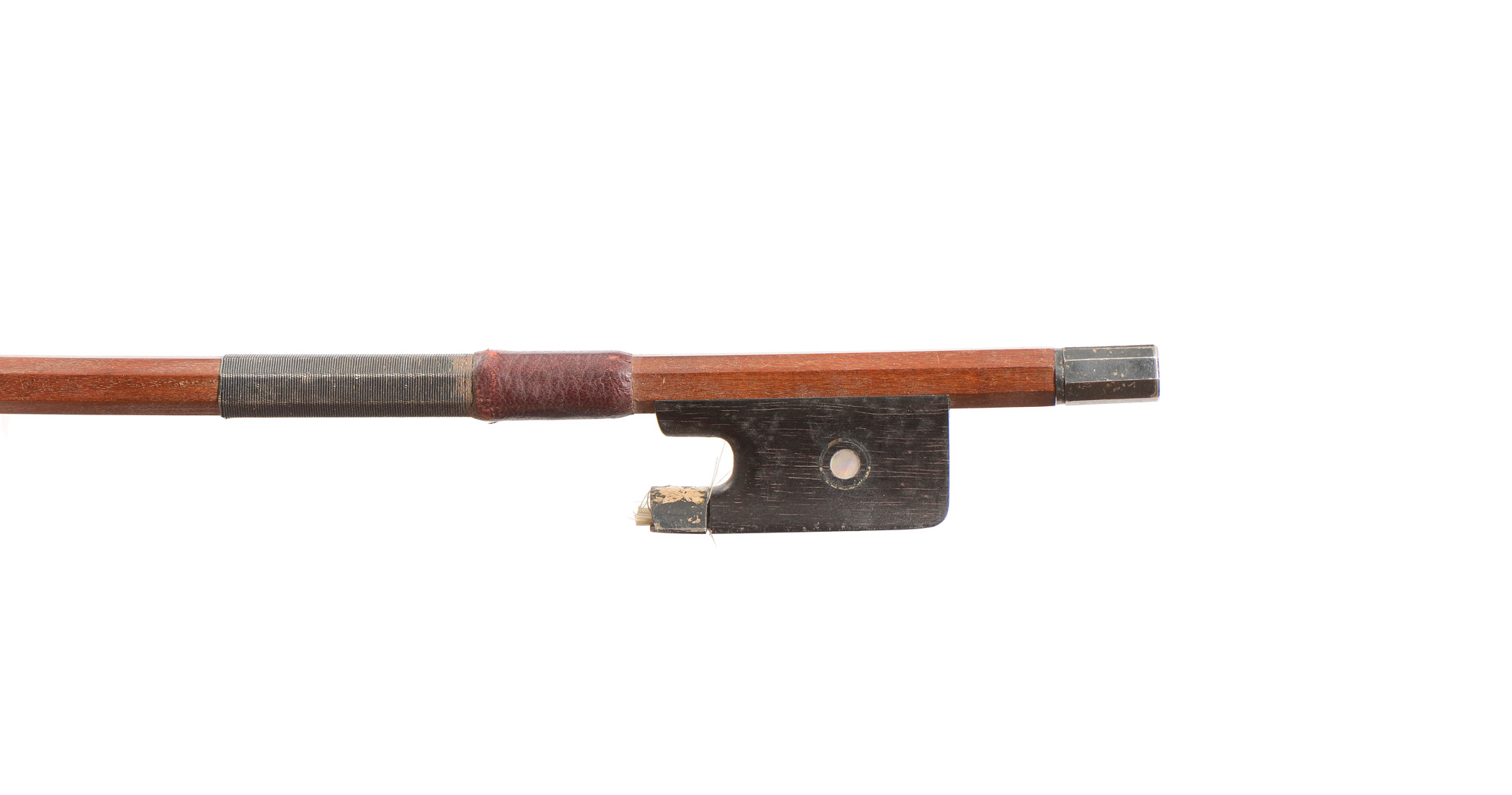 fait à Mirecourt. Belle baguette octogonale en pernambouc. Hausse ébène montée argent. 68,2 g sans mèche et avec garniture sur soie. 697 mm.