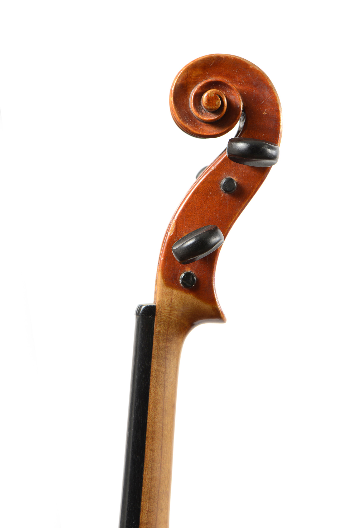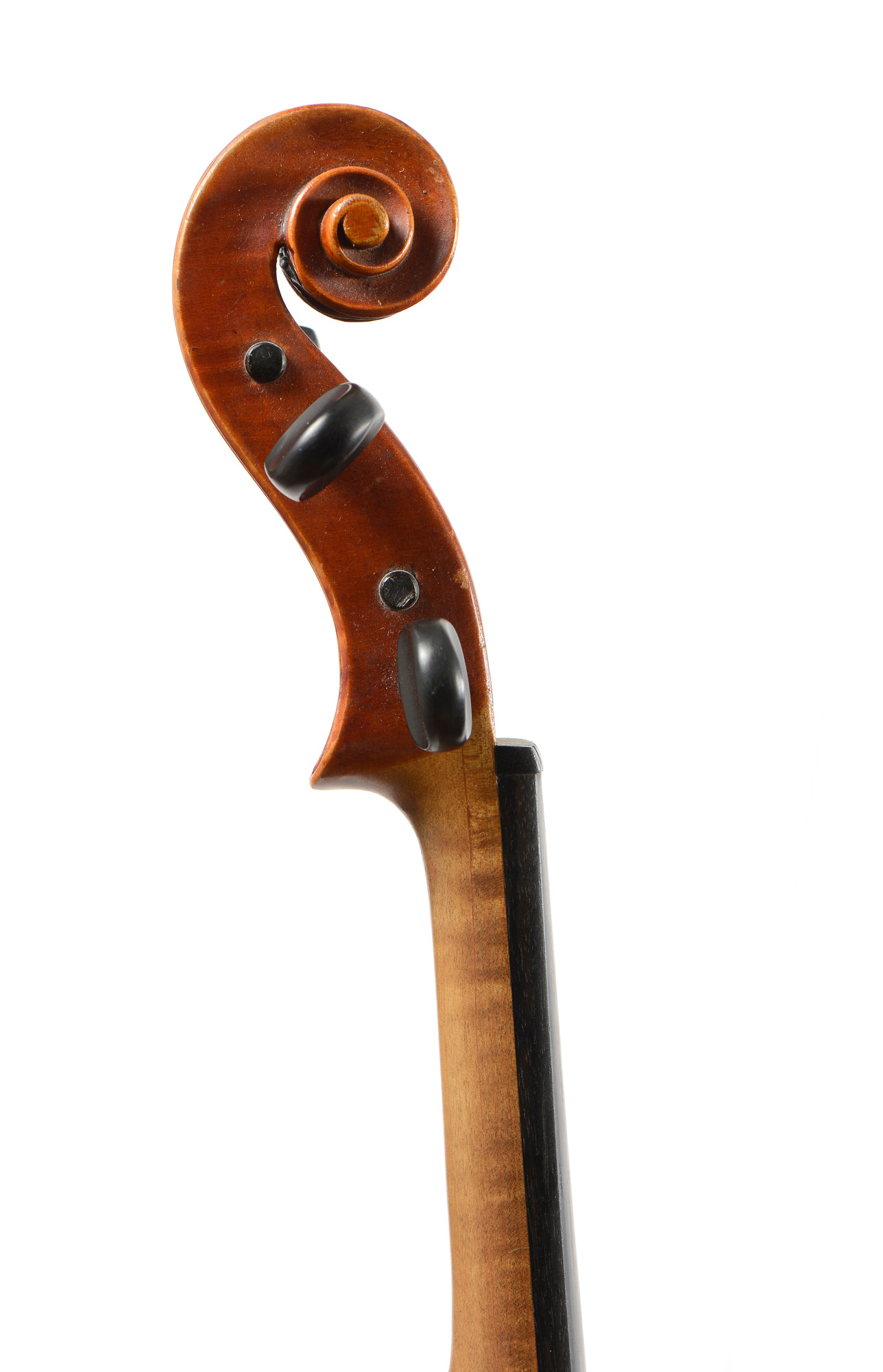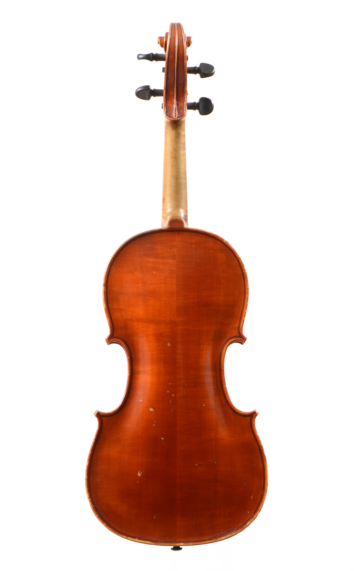 (XXe century) Fond de deux pièces en érable aux ondes douces. Table en épicéa aux pores irréguliers, plutôt larges. 360 mm.
