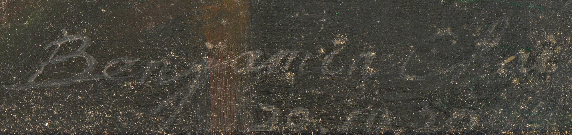 Huile sur toile représentant Antonio Stradivarius dans son atelier. Reproduction de Alton S.Tobey, par Benjamin Chai, signé et daté de 2004 en bas à droite. 52,5 x 70 cm.