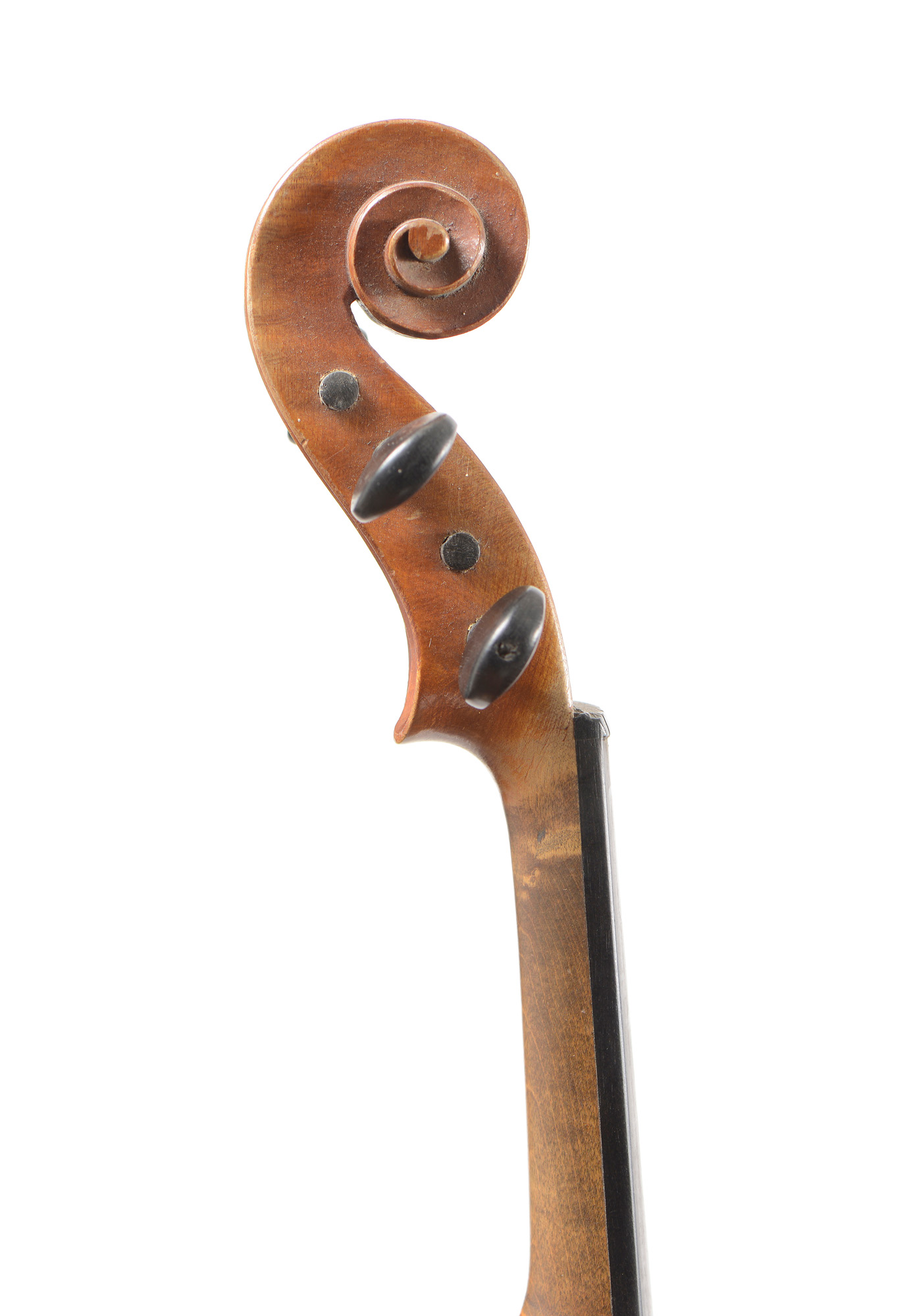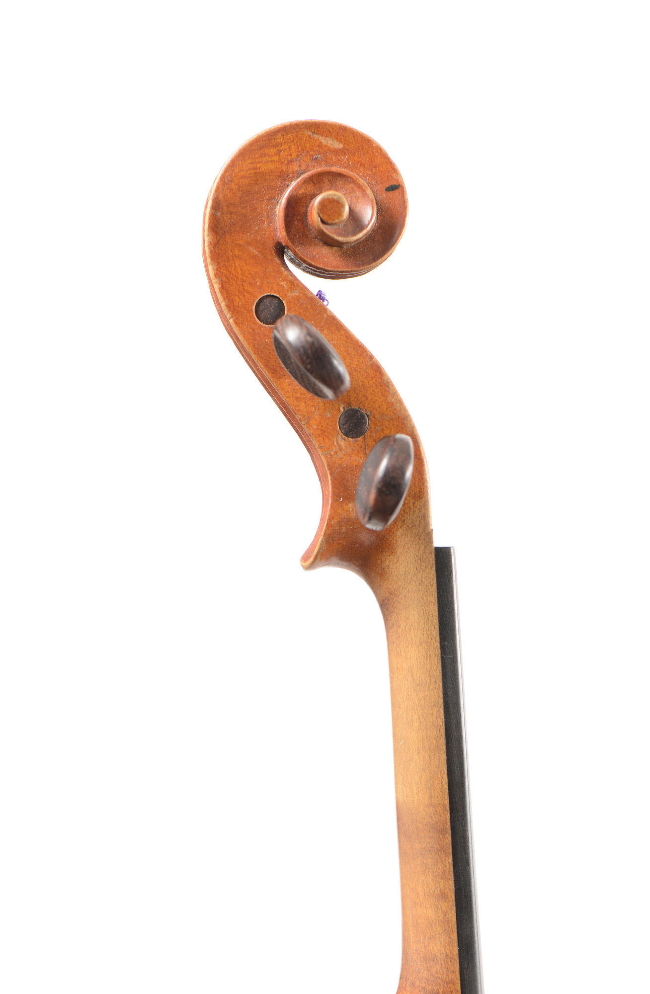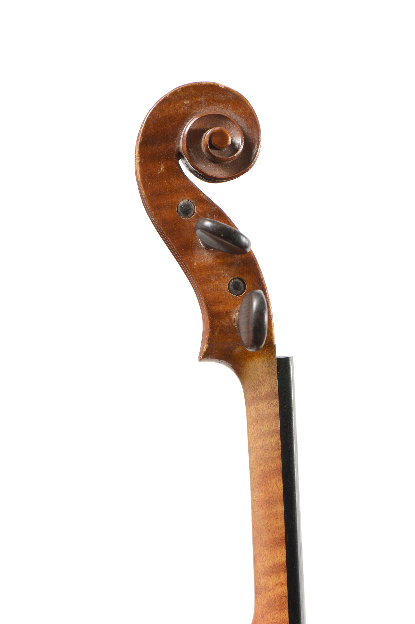 Un violon 3/4 portant une étiquette de Nicolas Bertholini, en l'état. Un violon 3/4 Anonyme en l'état. Un violon 3/4 portant une étiquette Stradivarius. Un violon 3/4 portant une étiquette "copie de Stradivarius".