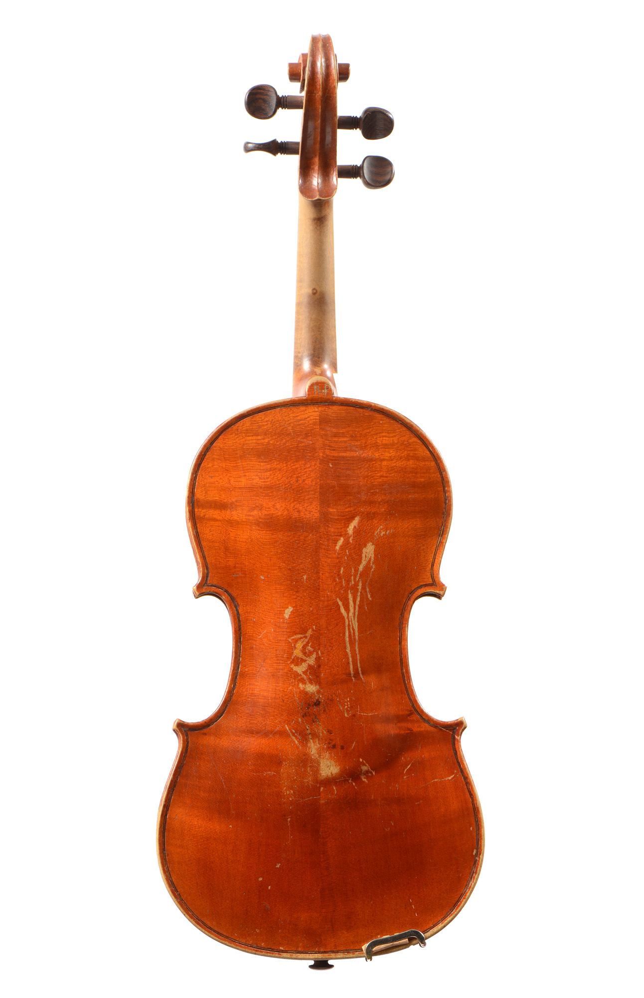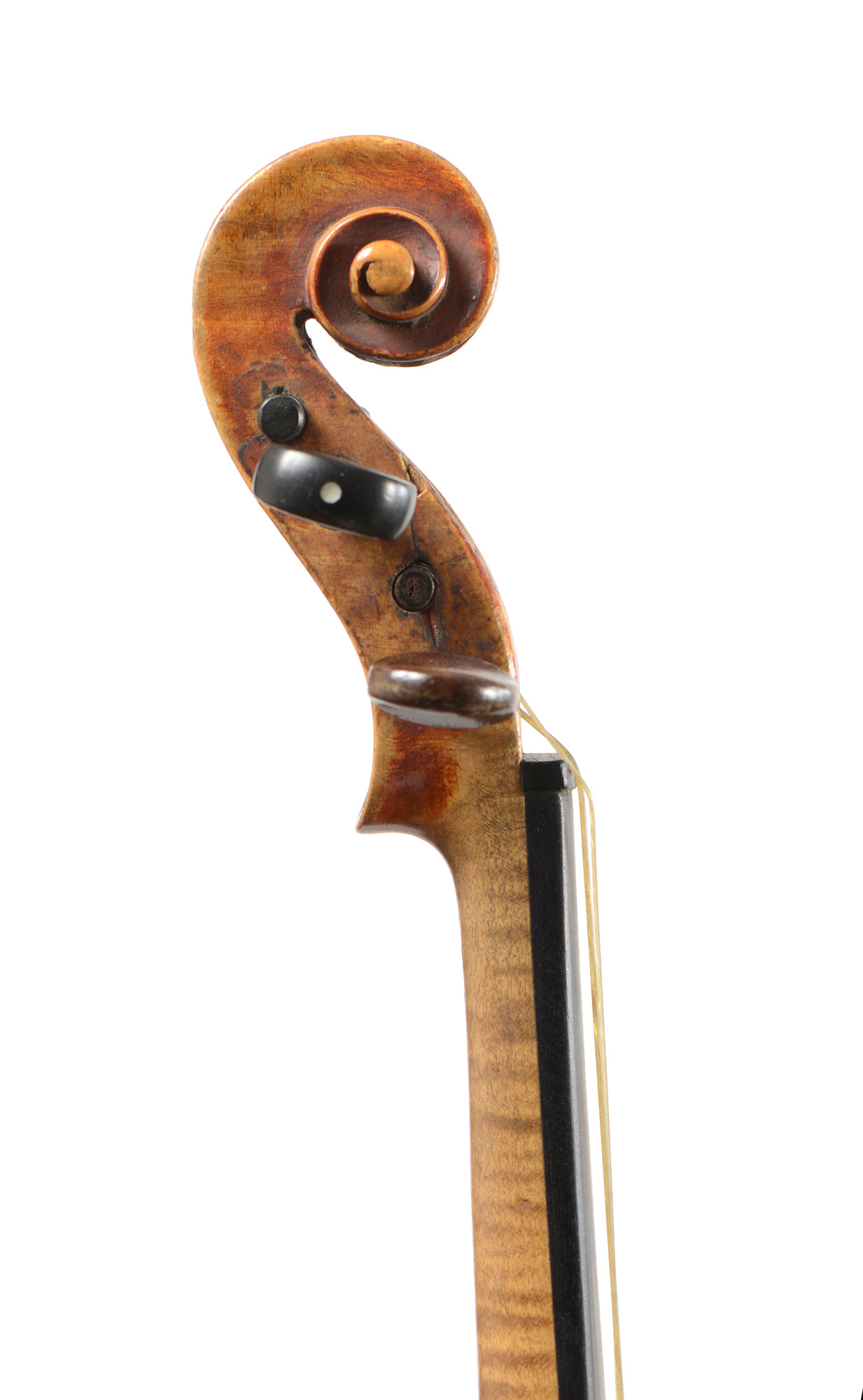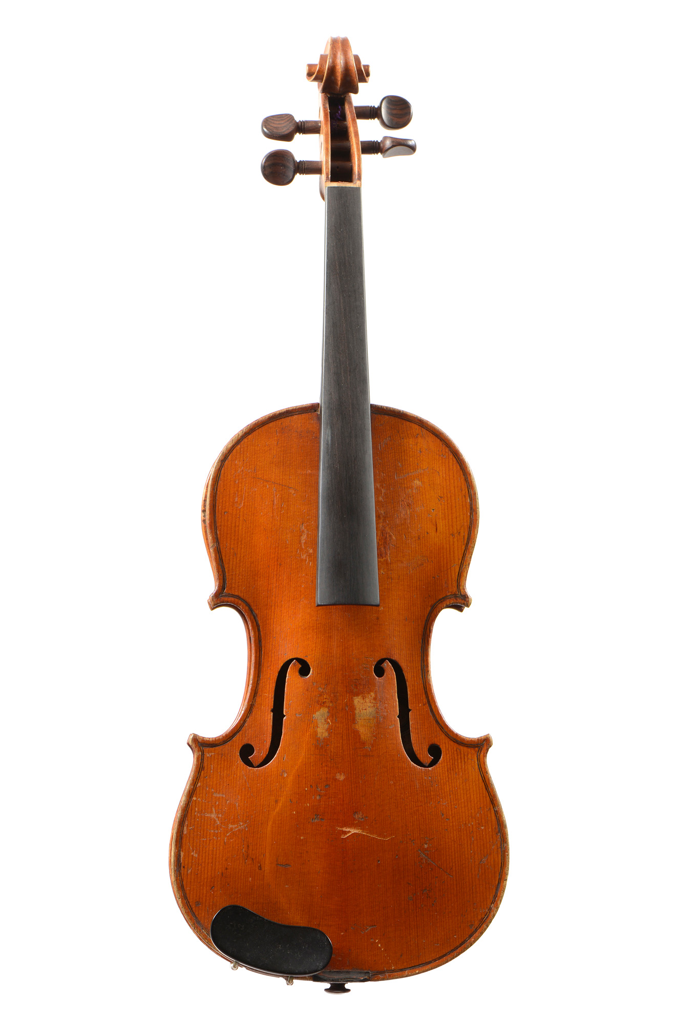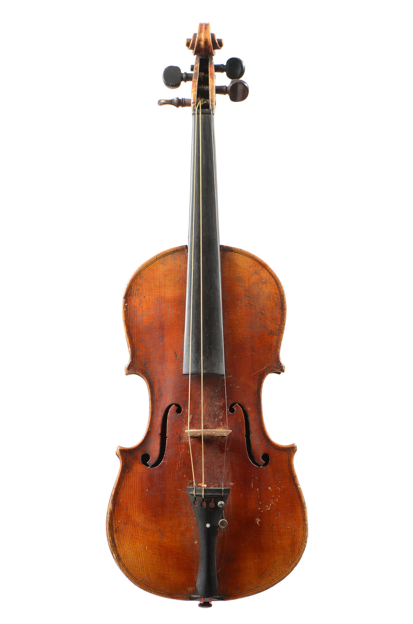 Un violon 3/4 portant une étiquette de Nicolas Bertholini, en l'état. Un violon 3/4 Anonyme en l'état. Un violon 3/4 portant une étiquette Stradivarius. Un violon 3/4 portant une étiquette "copie de Stradivarius".