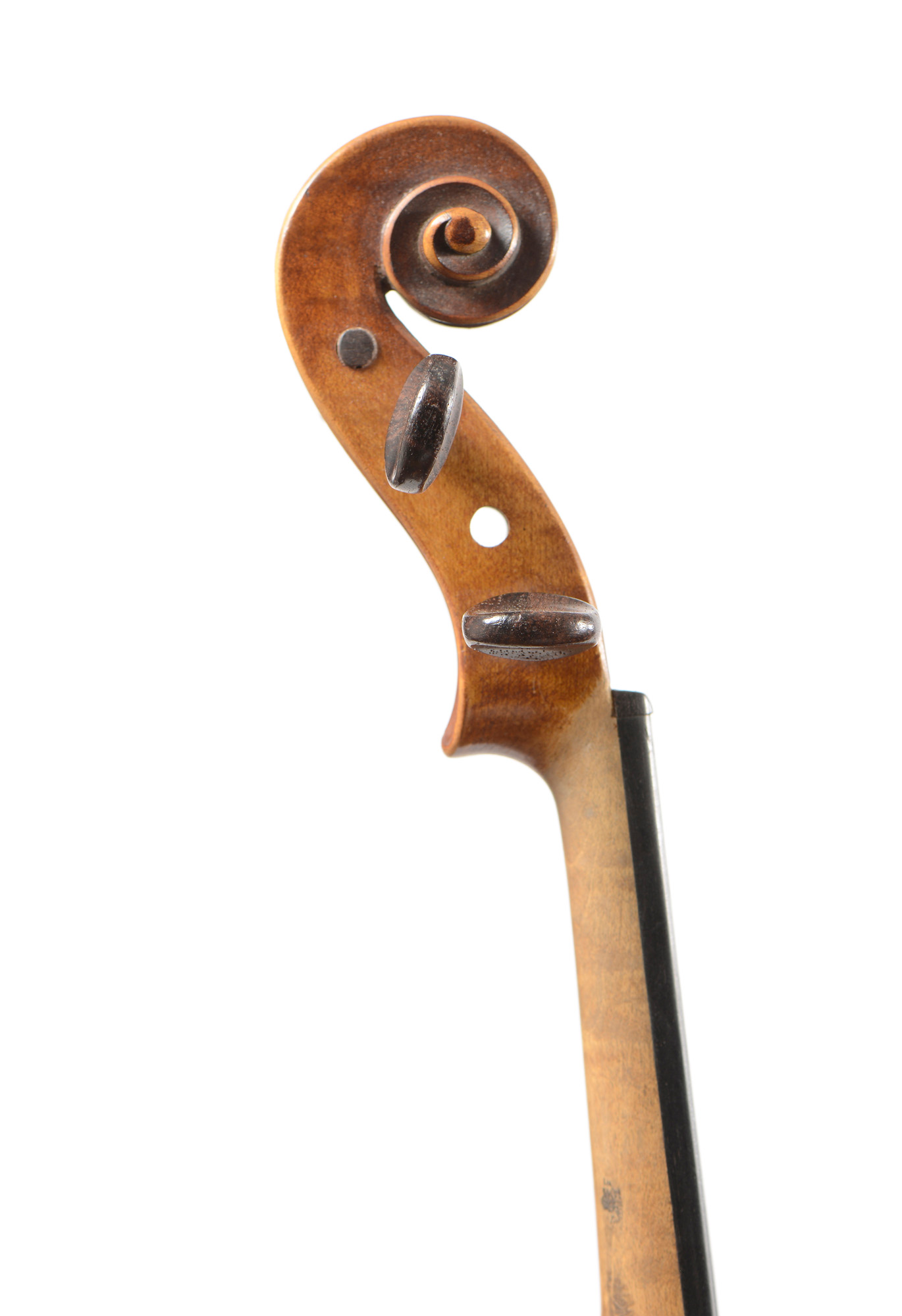 Fait à Mittenwald. Fond d'une pièce en érable maillé. 357 mm.