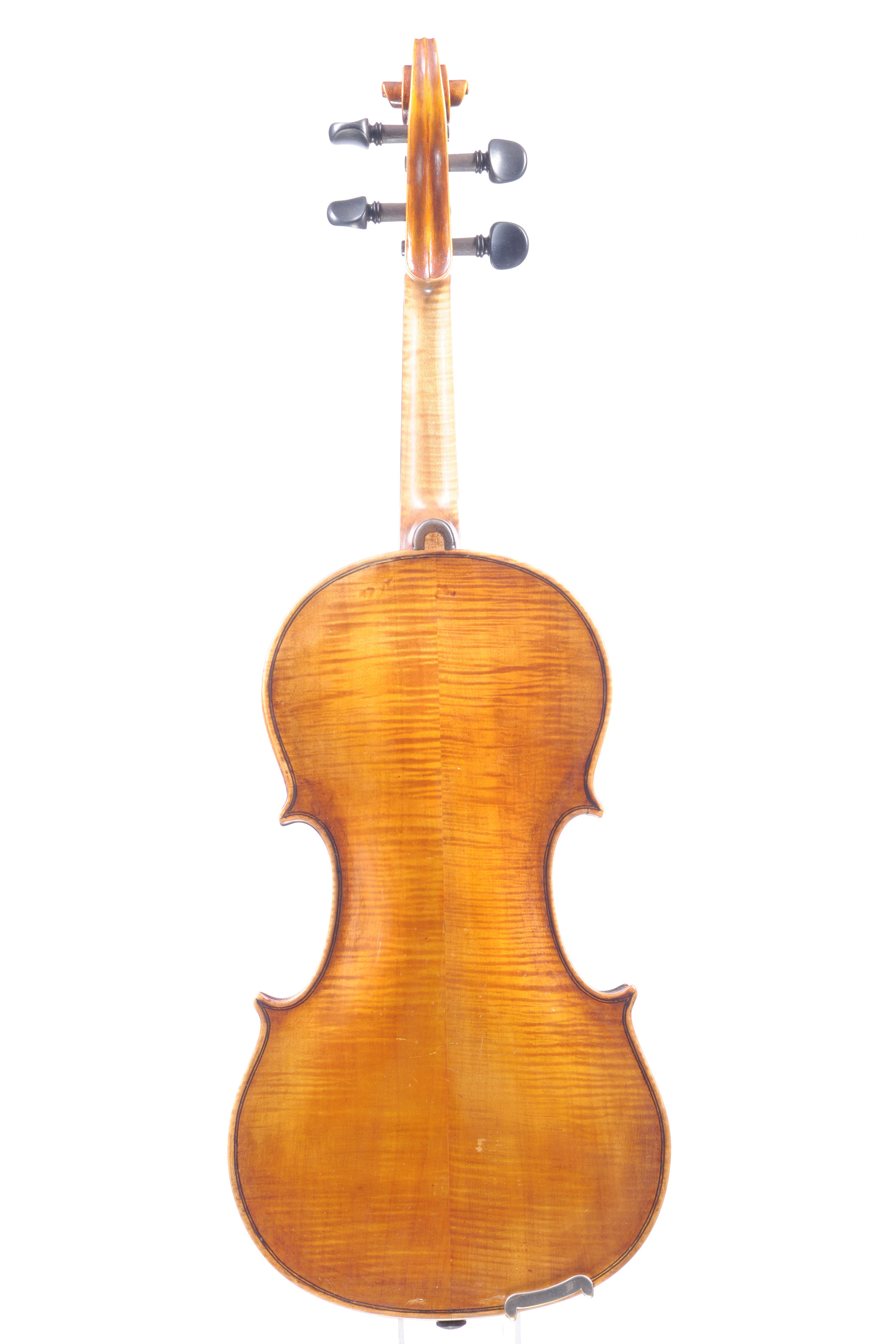 portant une étiquette apocryphe de Ventapane, Napoli. Violon probablement fait à Bueno Aires vers 1900 par un maitre Italien immigré. Fond de deux pièces aux ondes fines et régulières. Table de deux pièces aux pores irréguliers, larges au centre et plus minces sur les bords. Vernis brun doré. 360 mm.