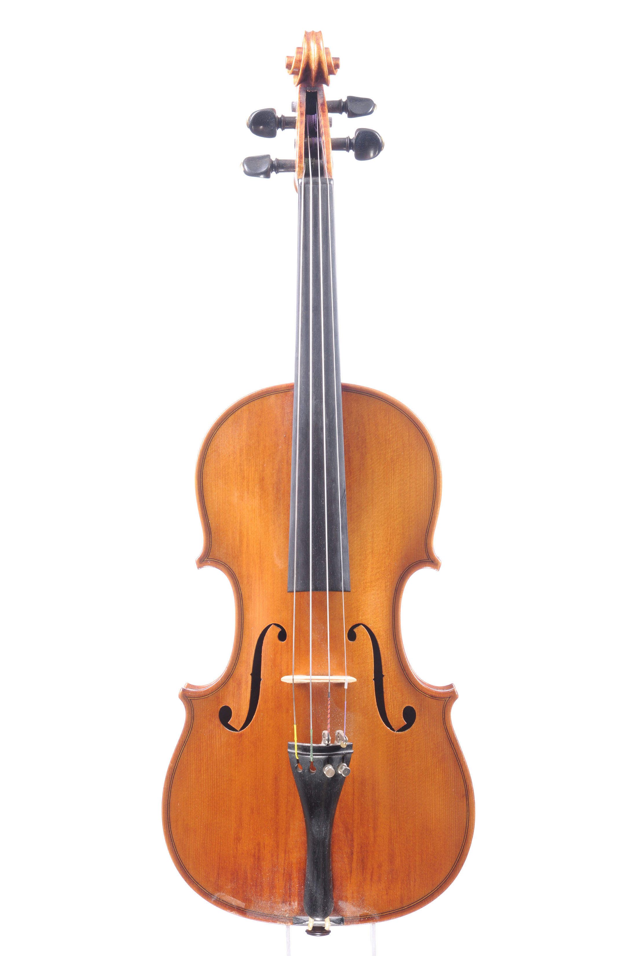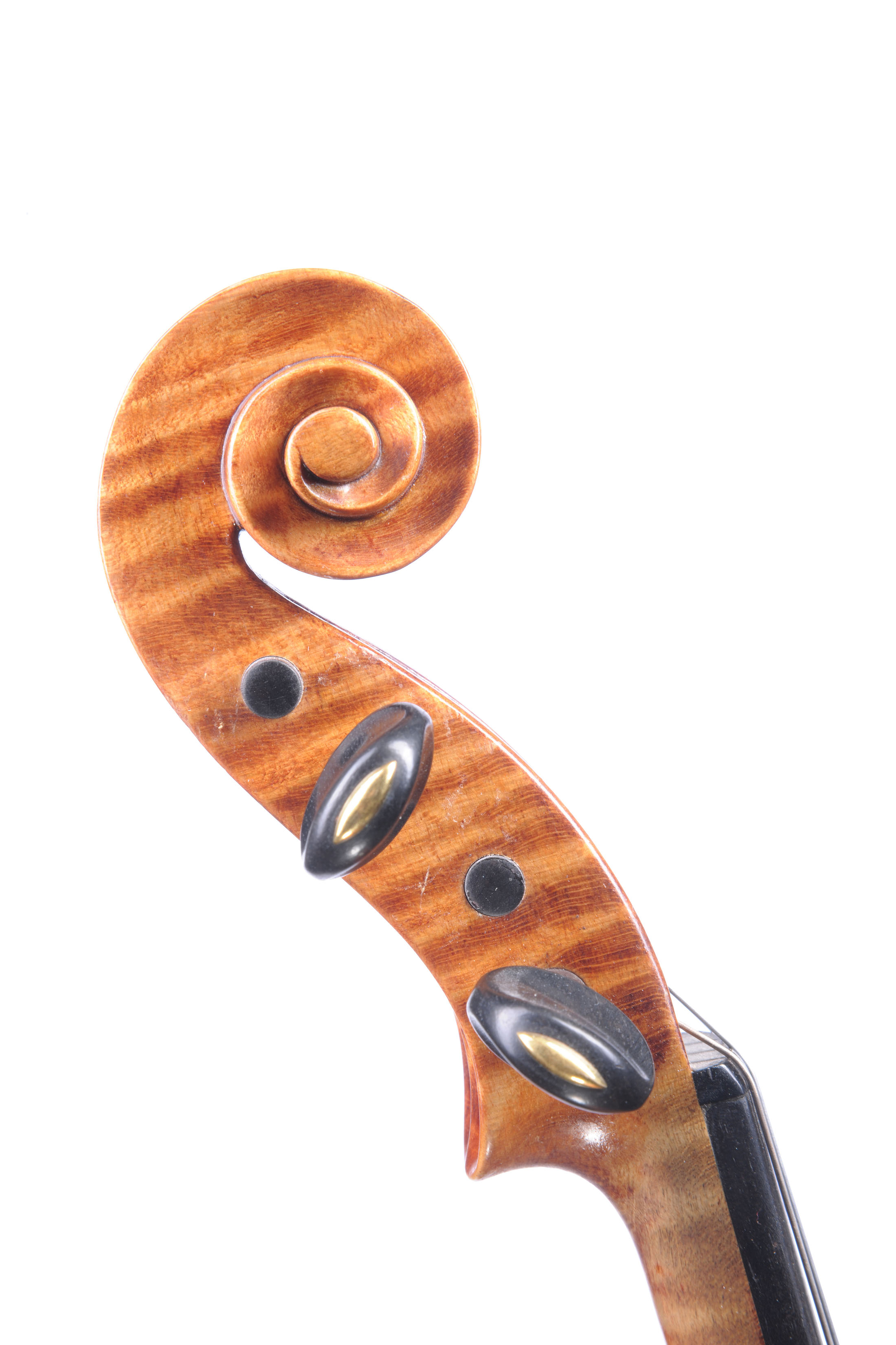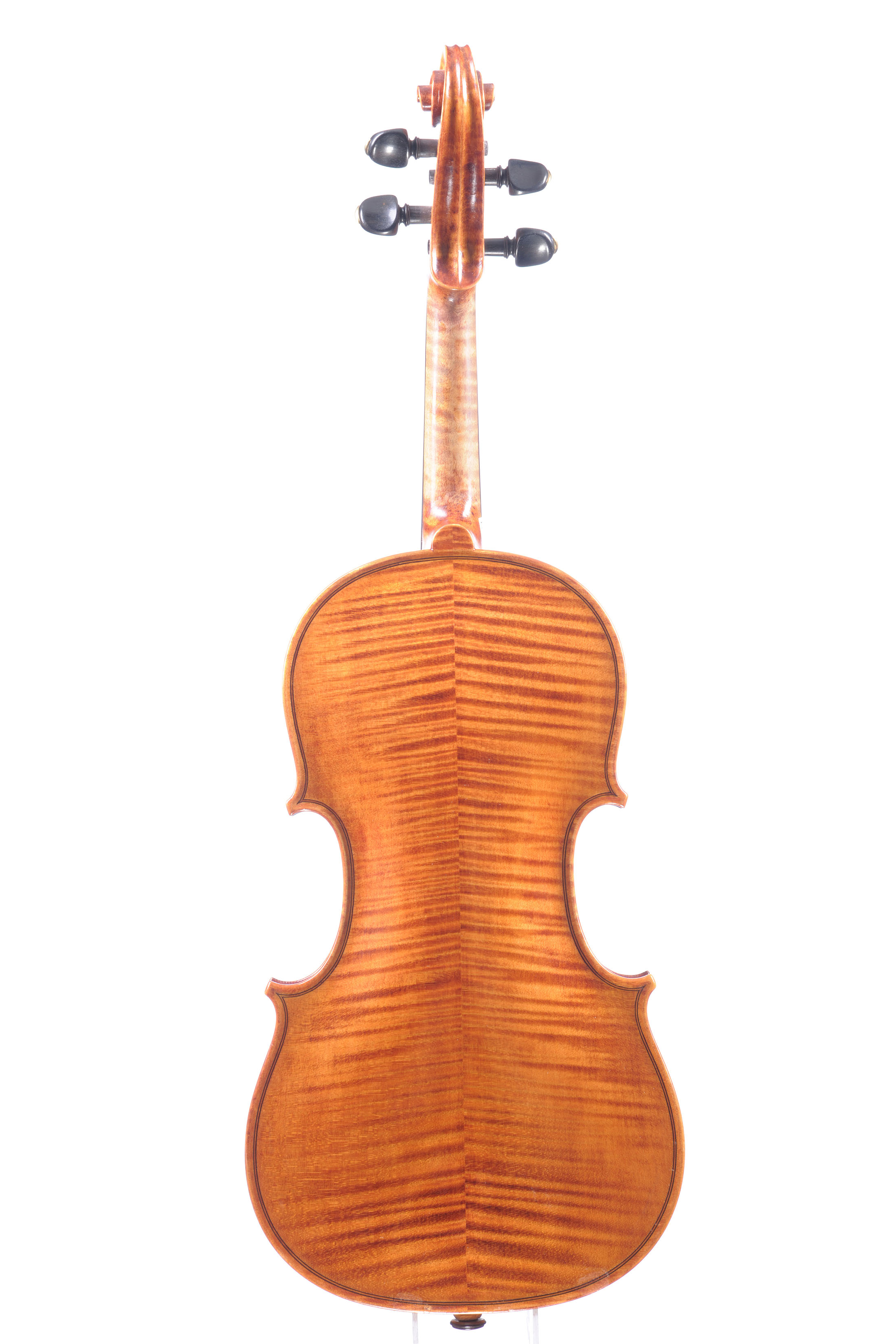 modèle de JB Guadagnini dont il porte la marque au fer, en bois d'érable aux ondes régulières descendantes sur les bords. Vernis brun orangé. 354 mm. Parfait état.