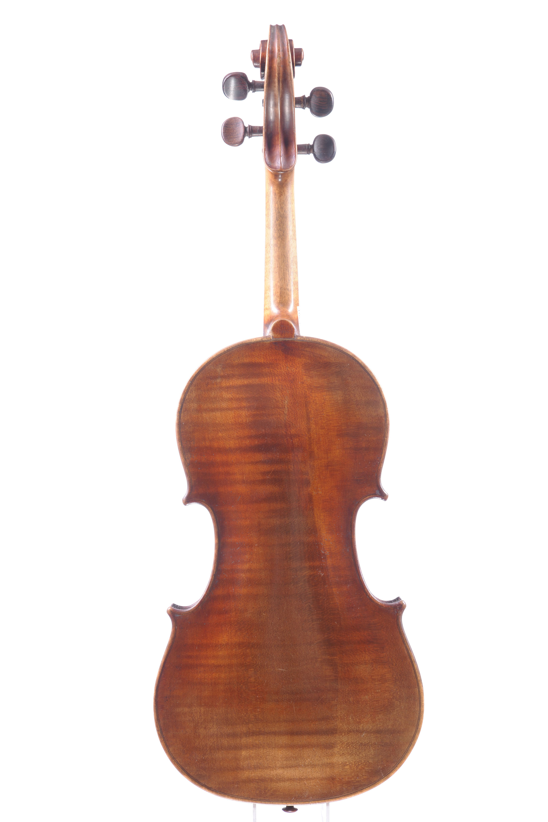 fait à Mirecourt probablement chez Laberte, en copie de Jacobus Stainer. Vernis brun doré. 359 mm. Fond d'une pièce.