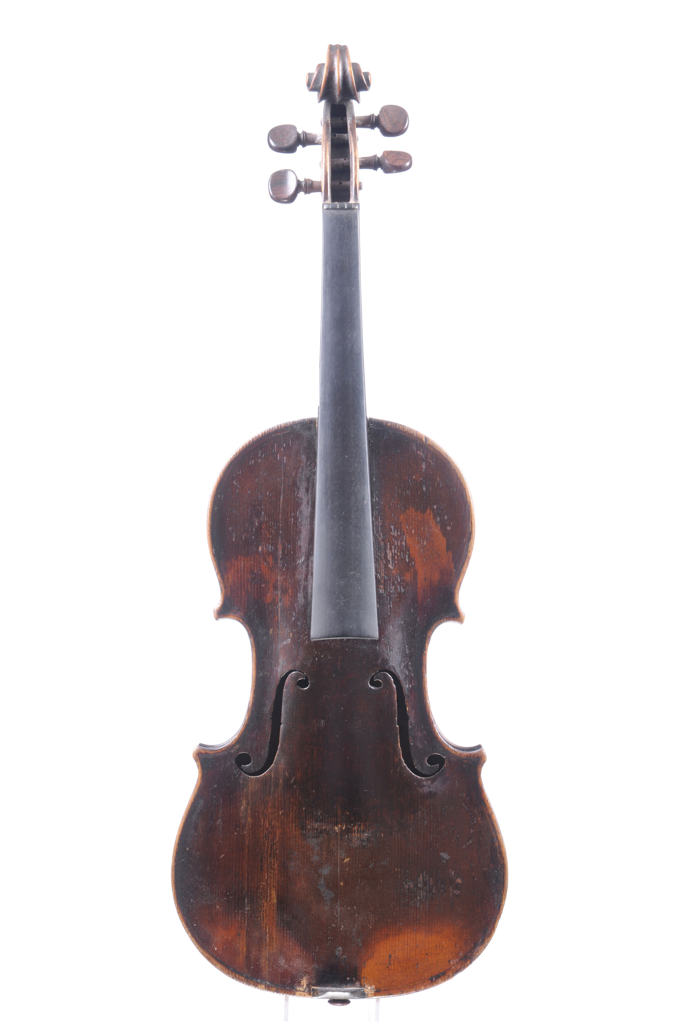 à Paris, fait à la fin du XVIIIe. Fracture de table restaurée. Fond de deux pièces aux ondes montantes sur les bords. Vernis brun sur fond doré. 356 mm.