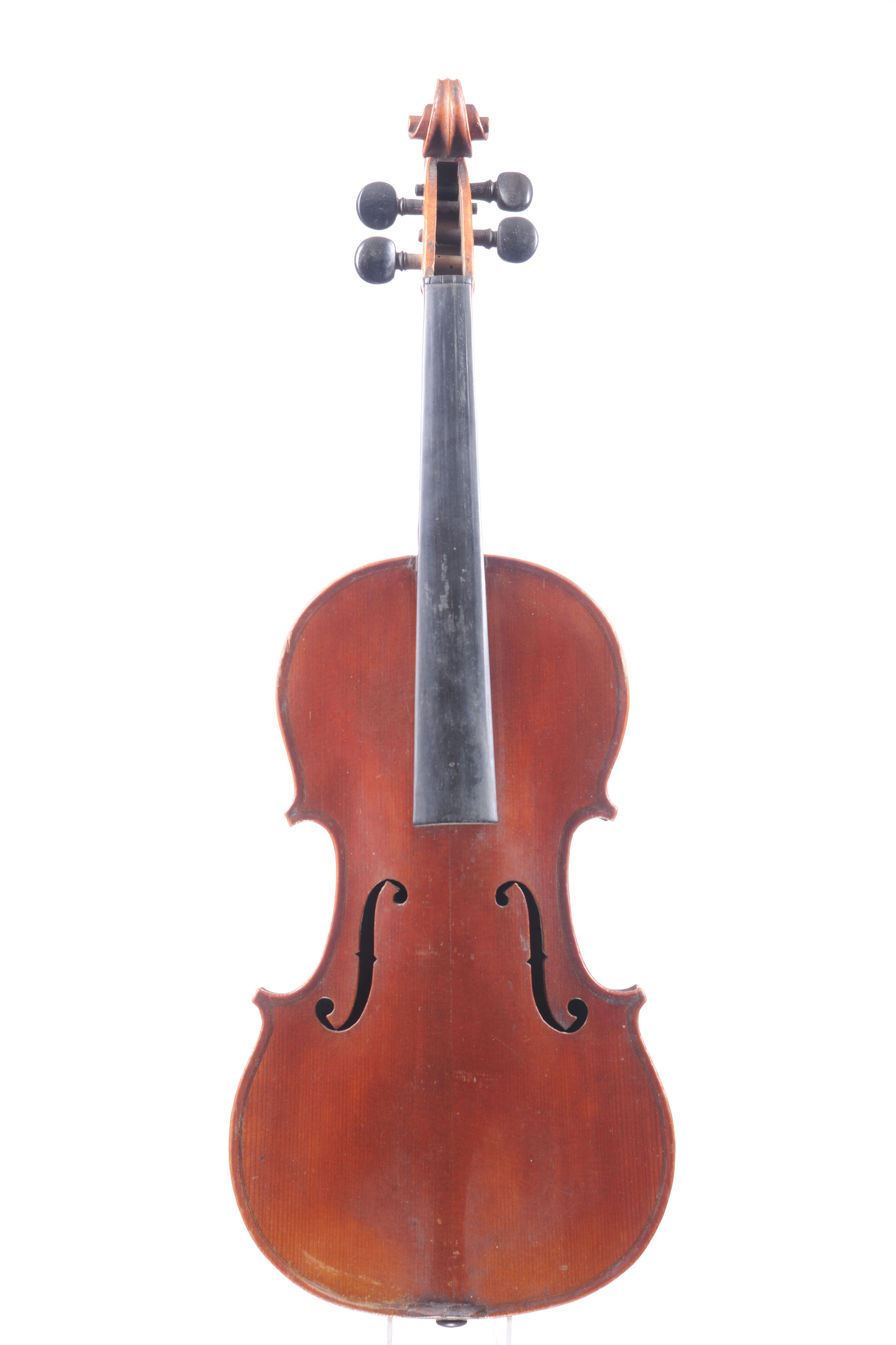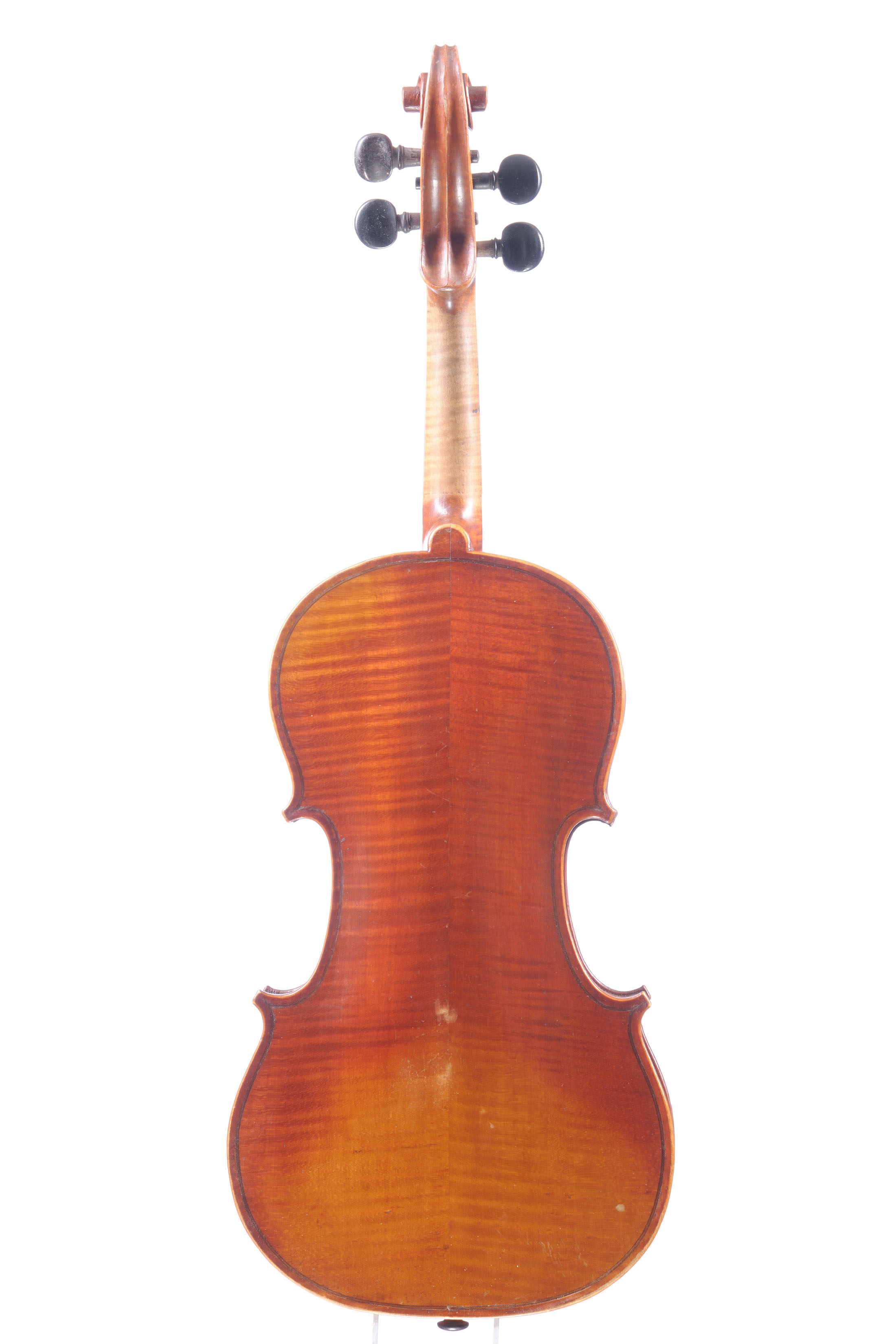 en copie de Stradivarius 1719 dont il porte l'étiquette. Fond de deux pièces. 356 mm. Fond de deux pièces? Vernis orangé rouge sur fond doré.