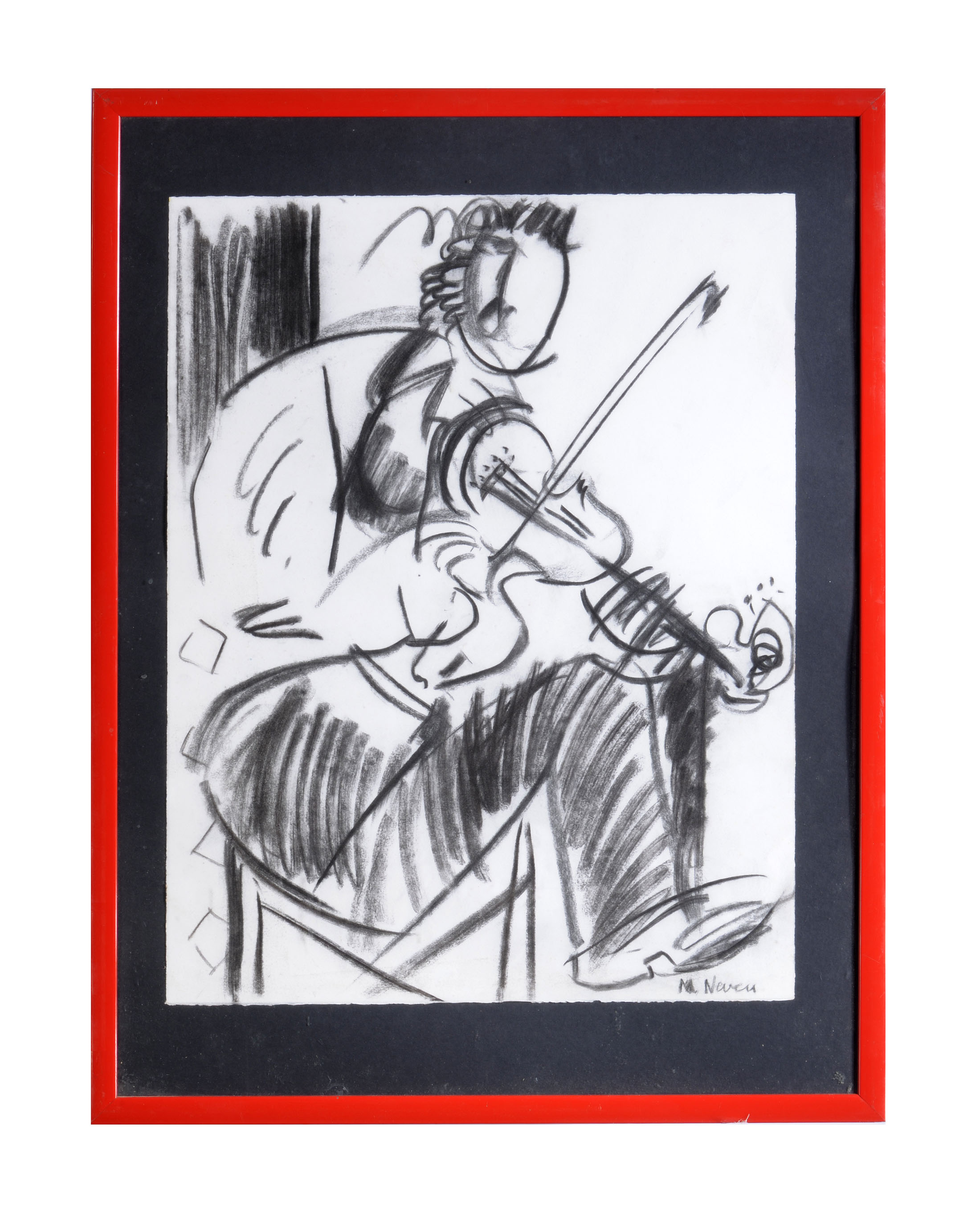 Fusain de Marcel Neveu représentant un violoniste. 50 x 65 cm. Signé en bas à droite M.Neveu