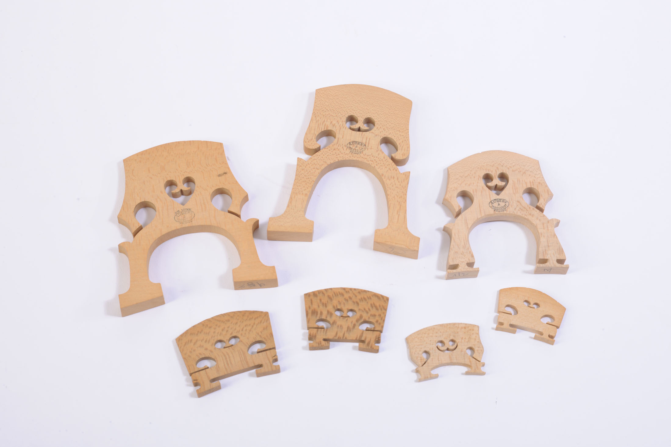 5 chevalets Français pour violoncelle 4/4. 9 chevalets Belges pour violoncelle 4/4. 3 chevalets Français pour violoncelle 3/4. 4 chevalets Français pour violoncelle 1/2. 11 chevalets pour alto. 4 chevalets pour violon 4/4. 15 chevalets pour violon 1/2.