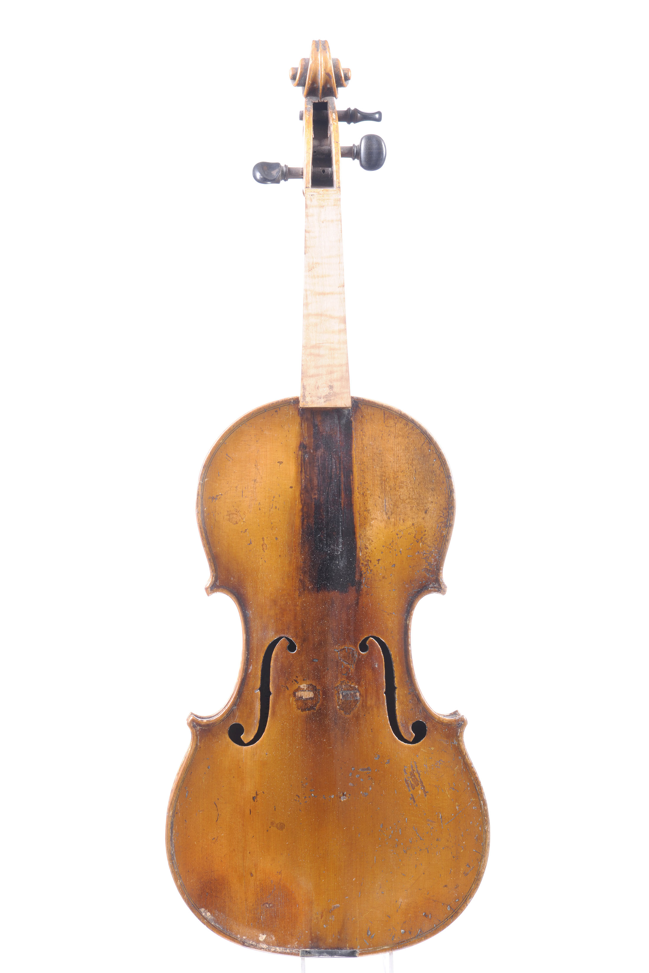 fait vers 1850. portant une étiquette en copie de Nicolaus Amatus. Fond de deux pièces aux ondes remontantes. Vernis Brun sur fond doré. 357 mm.