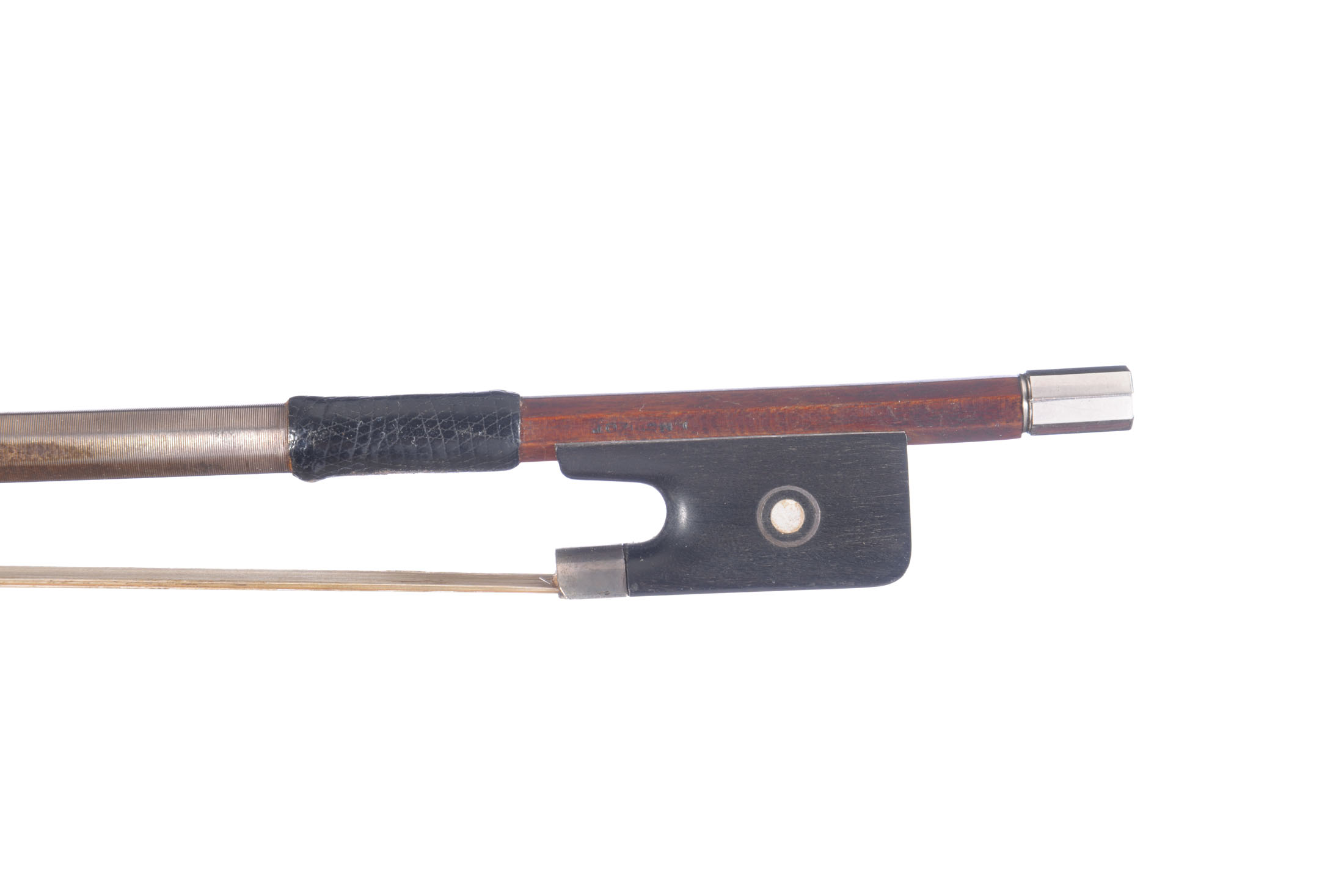 portant la marque au fer de L.Morizot. Baguette en beau bois de pernambouc. Hausse ébène montée argent. Grain cerclé. Bouton probablement d'un autre auteur. 727 mm. 63 g.