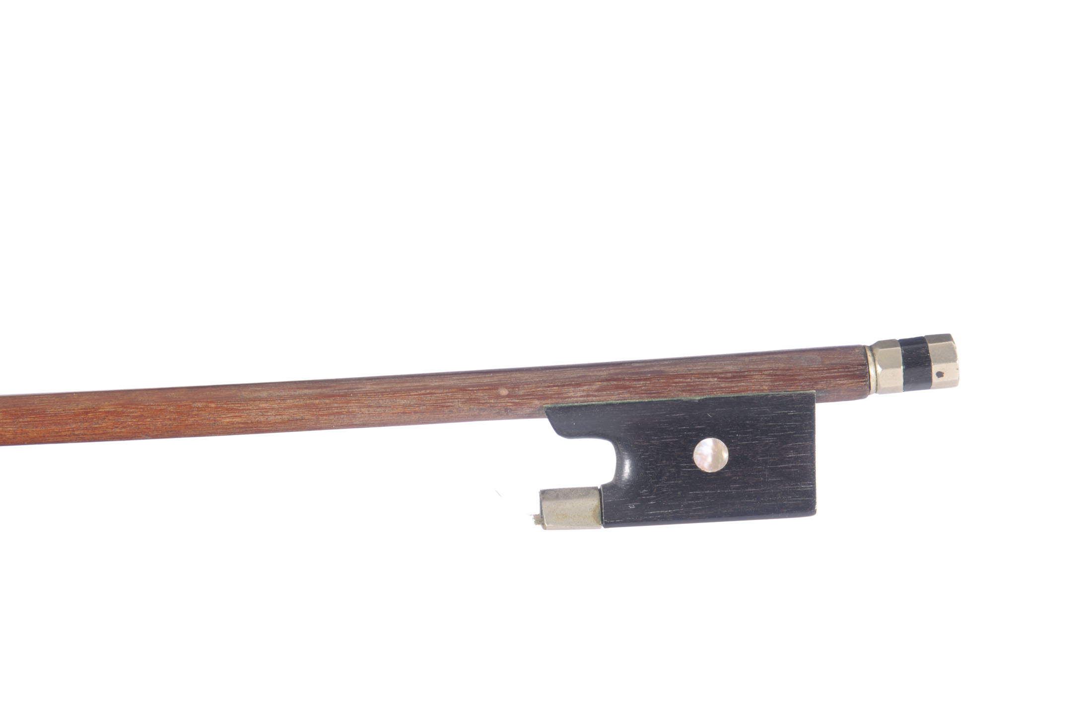 fait à Mirecourt, à la fin du XIXe. En bois de pernambouc. 725 mm. Hausse ébène, bouton monté maillechort. 45 g.