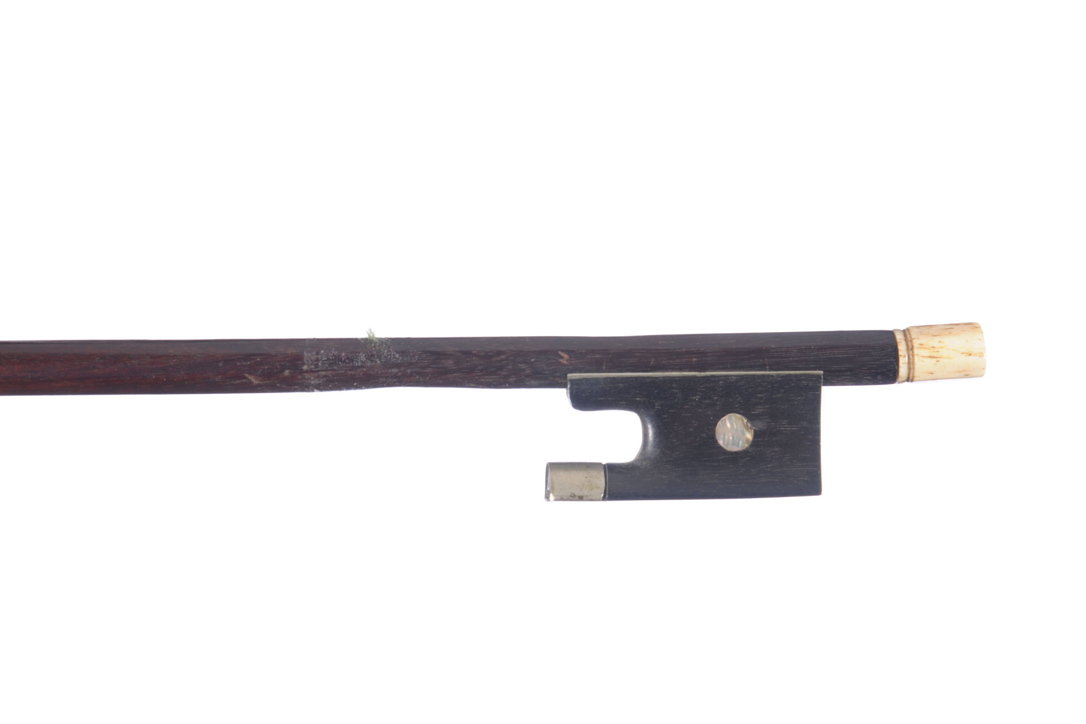 XIXe, baguette en pernambouc. Bouton en os, Hausse ébène montée maillechort. 726 mm. 48,3 g, sans mèche, garniture, plaque de tête.